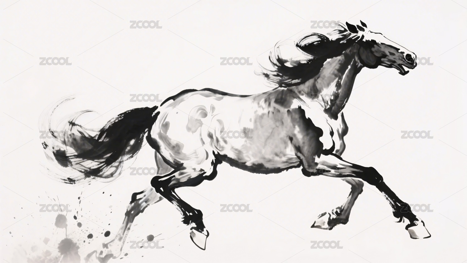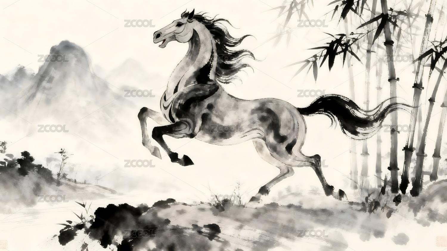 水墨画,骏马,奔腾,山水,国风,中国风,水墨,白马,写意,传统