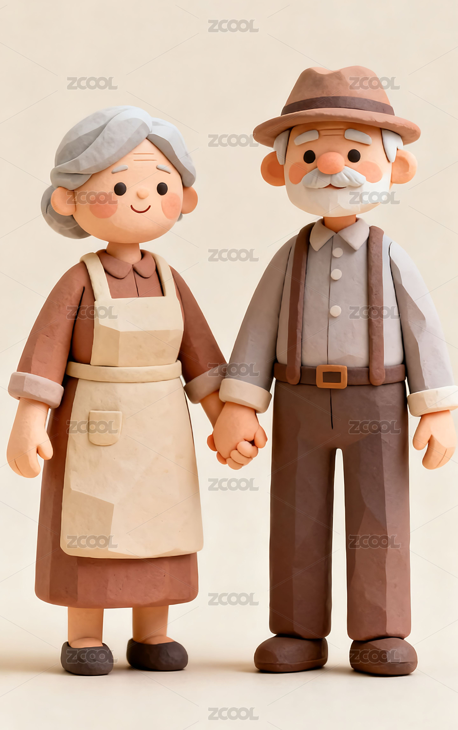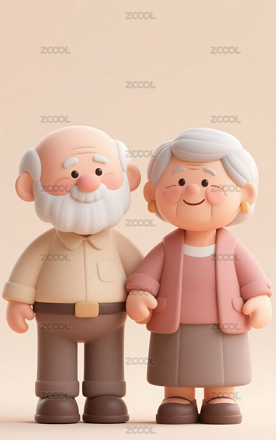3D,和蔼,立体,老人,老爷爷,老奶奶,老夫妇,模型,重阳节,尊老