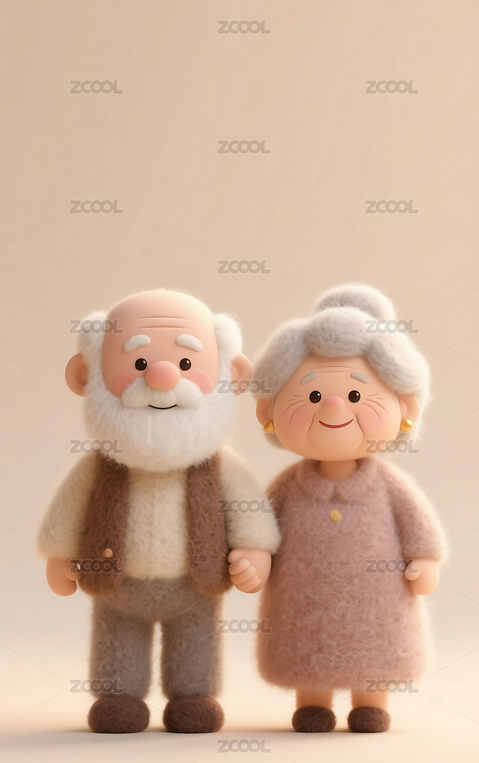 3D,和蔼,立体,老人,老爷爷,老奶奶,老夫妇,模型,重阳节,尊老