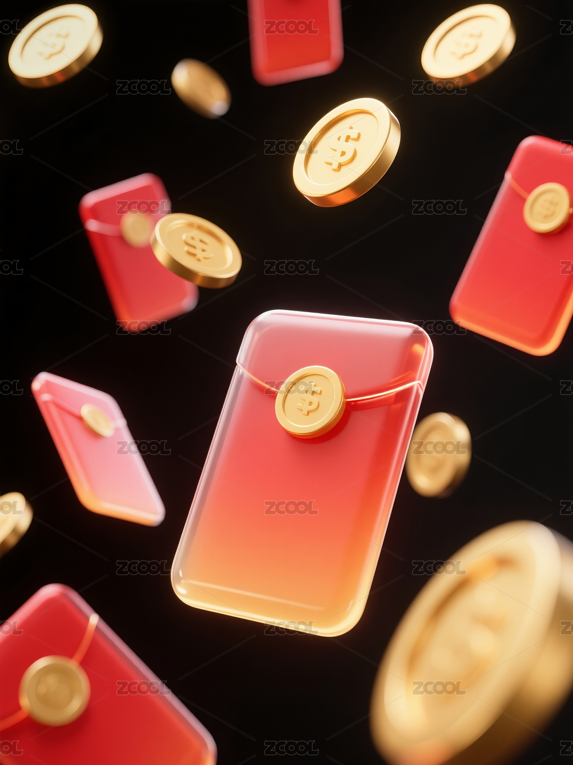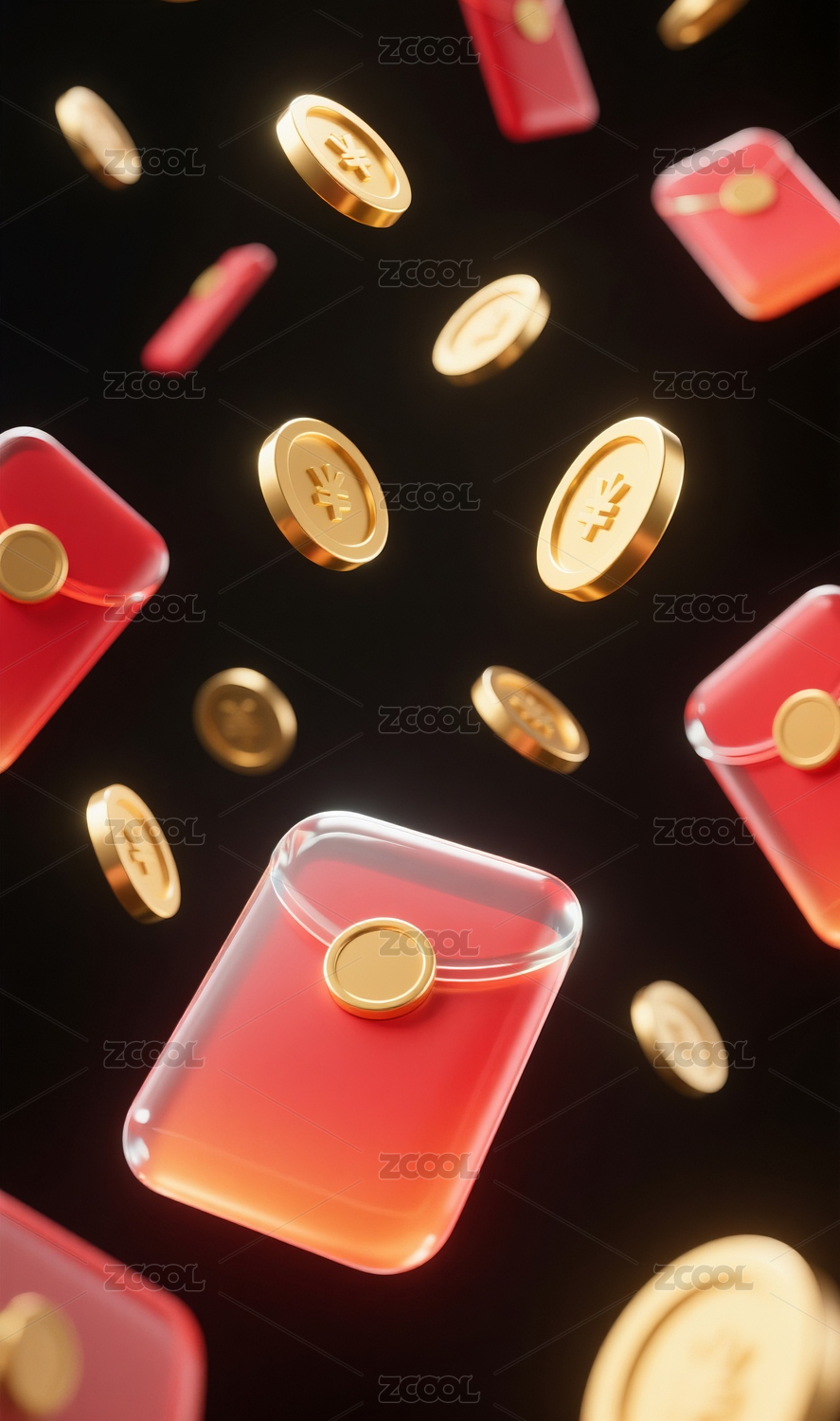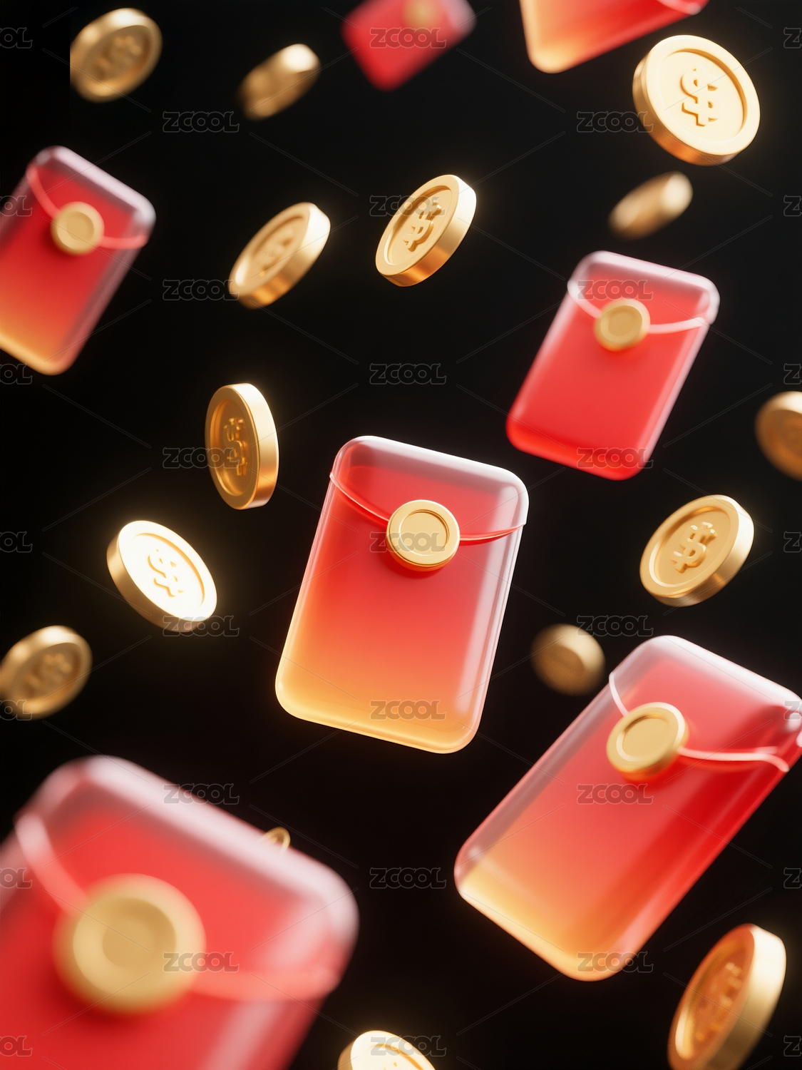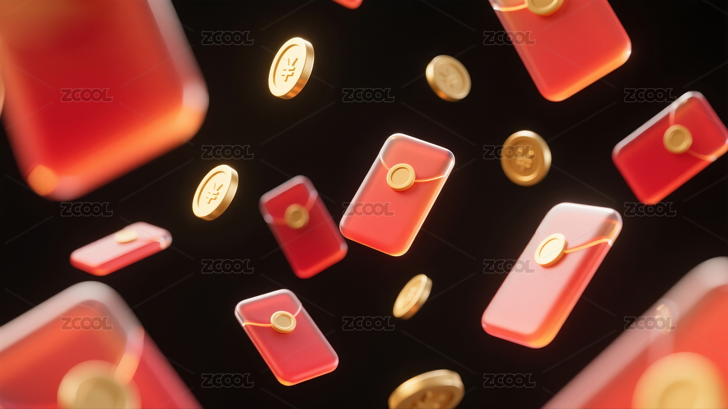 装饰,庆祝,食品,红包,金币,飞舞,喜庆,红色,素材,钱币