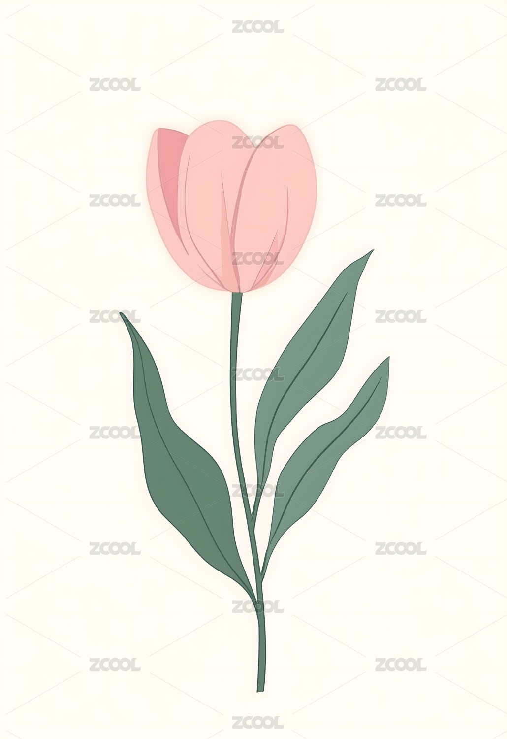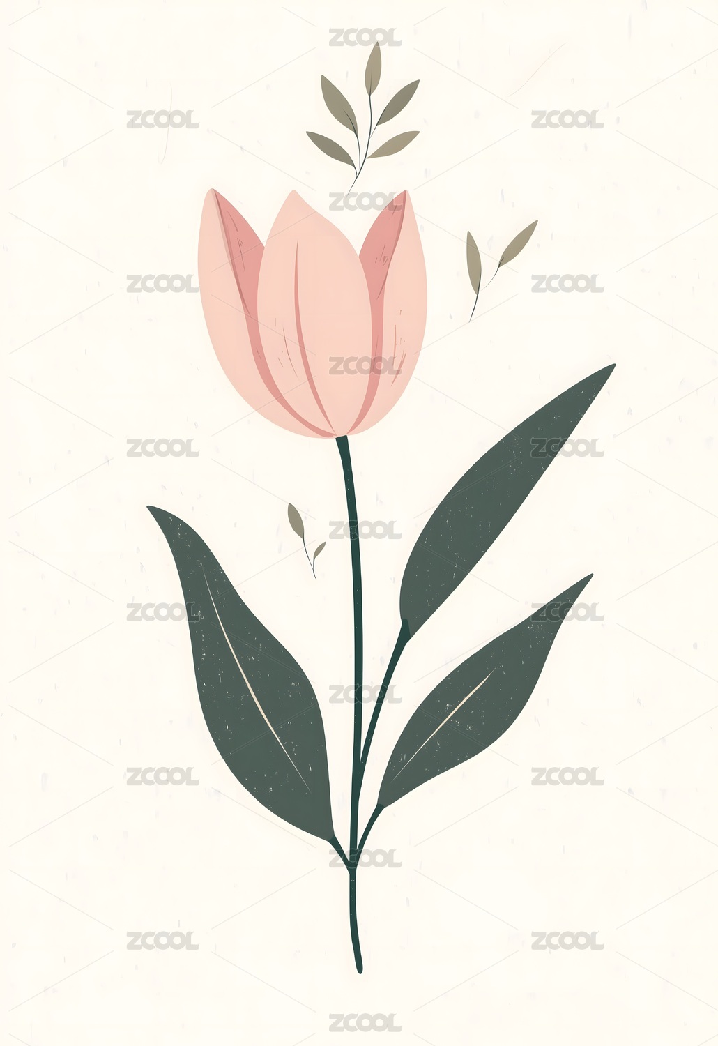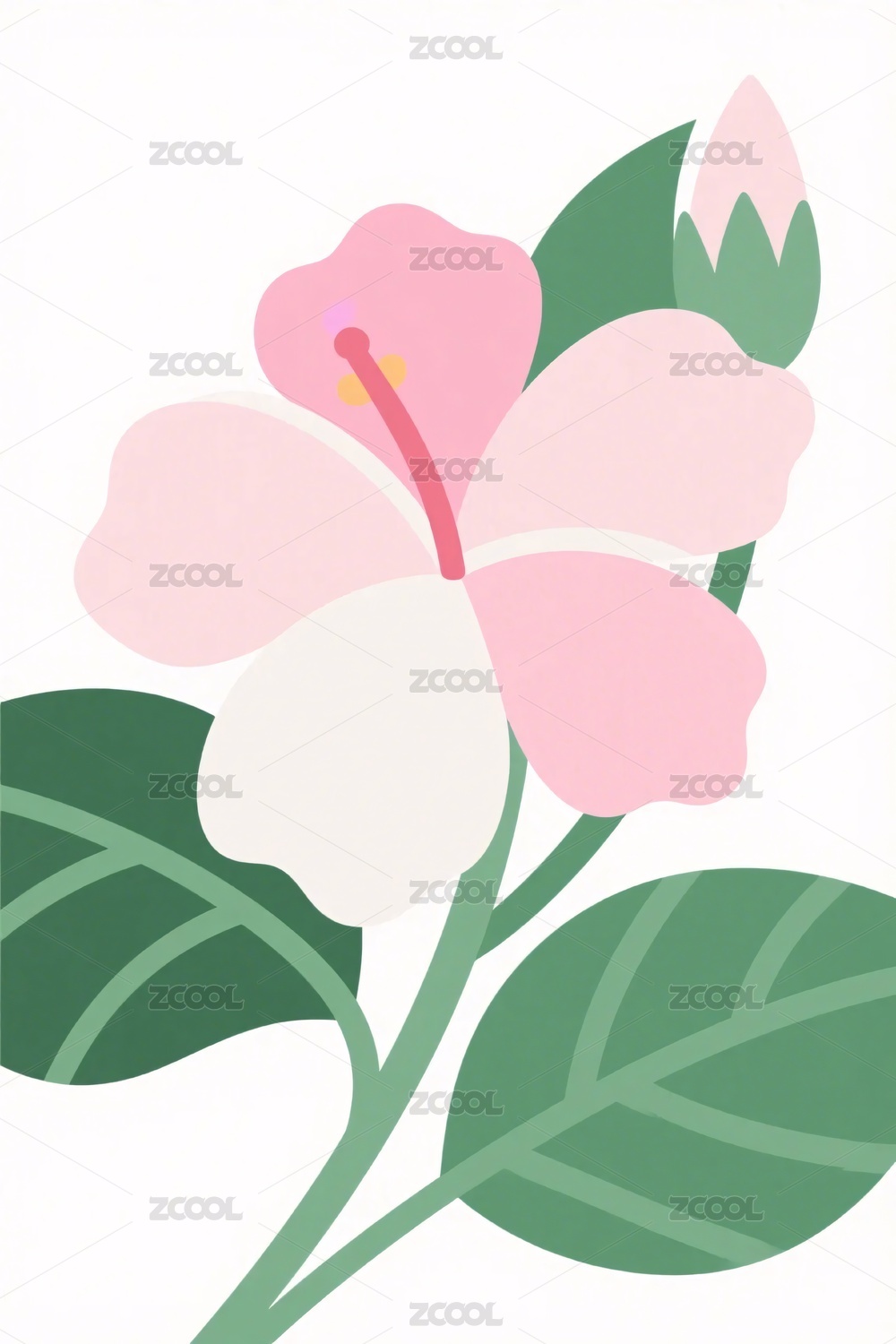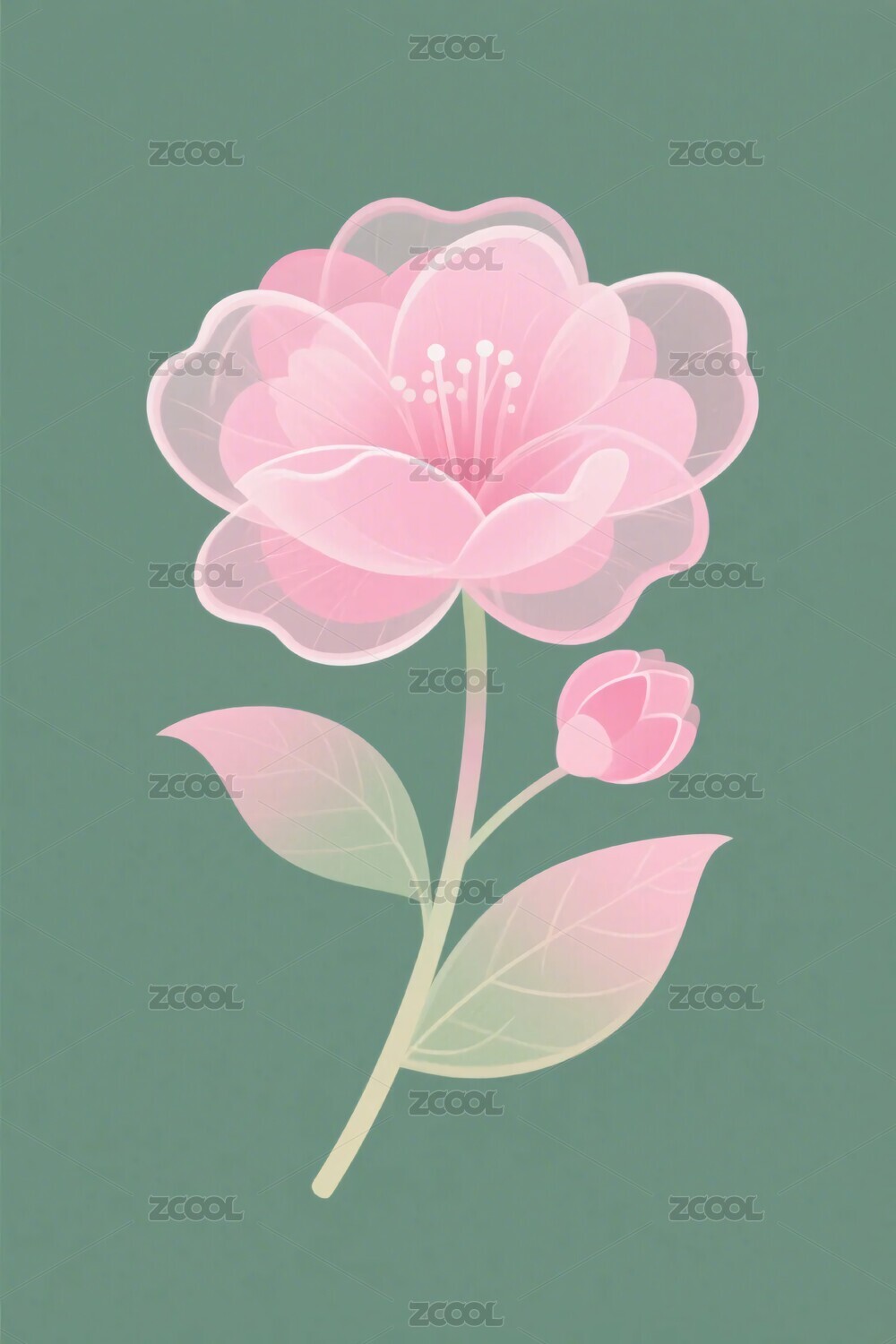 花朵,插画,叶子,植物,简约,粉色,绿色,装饰,平面,自然