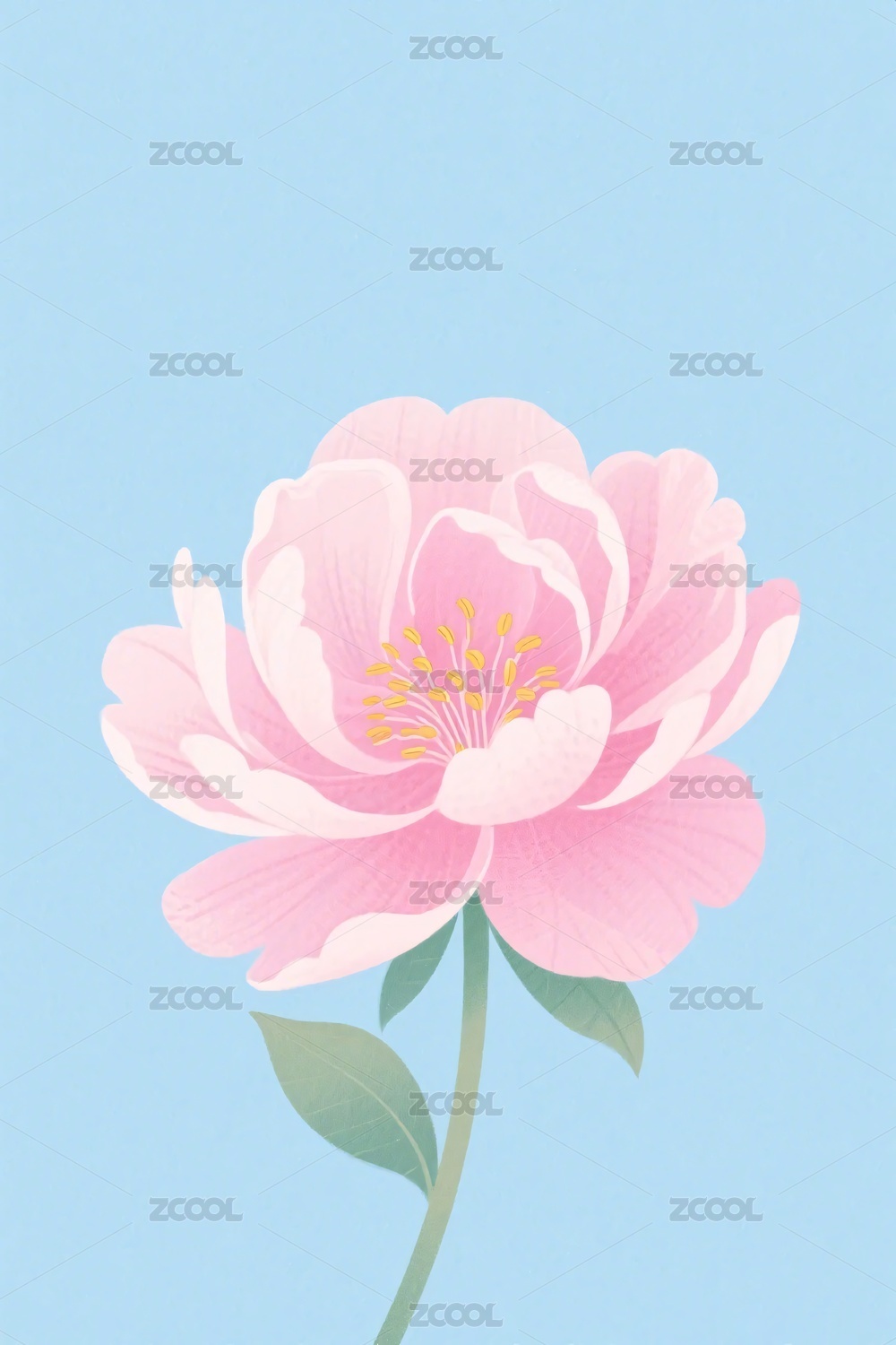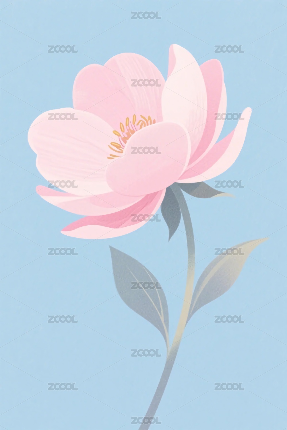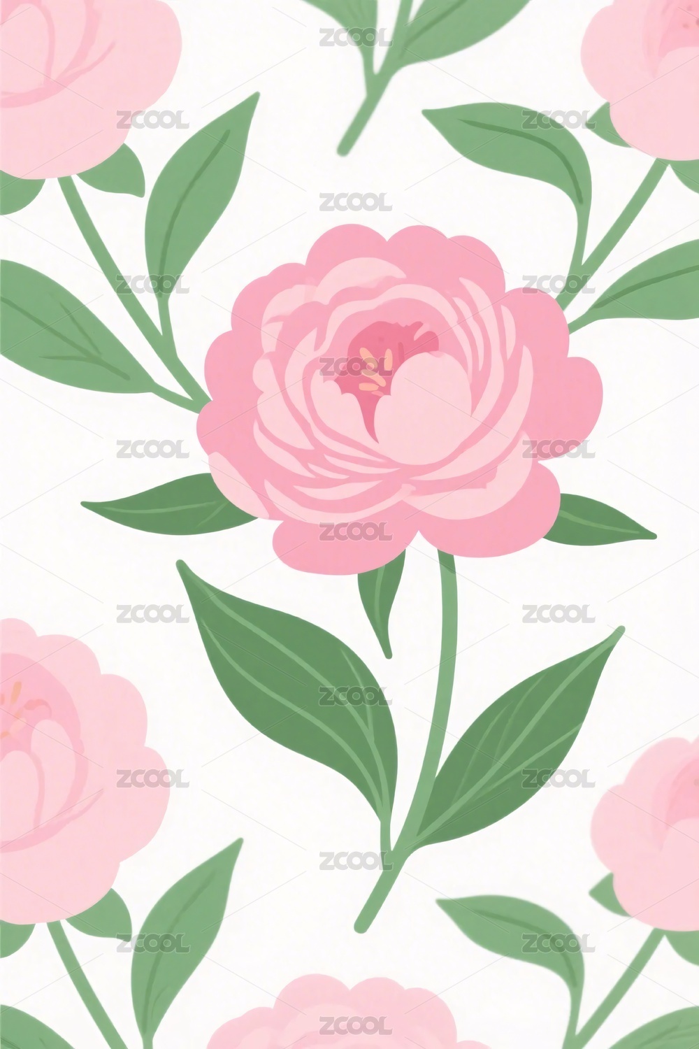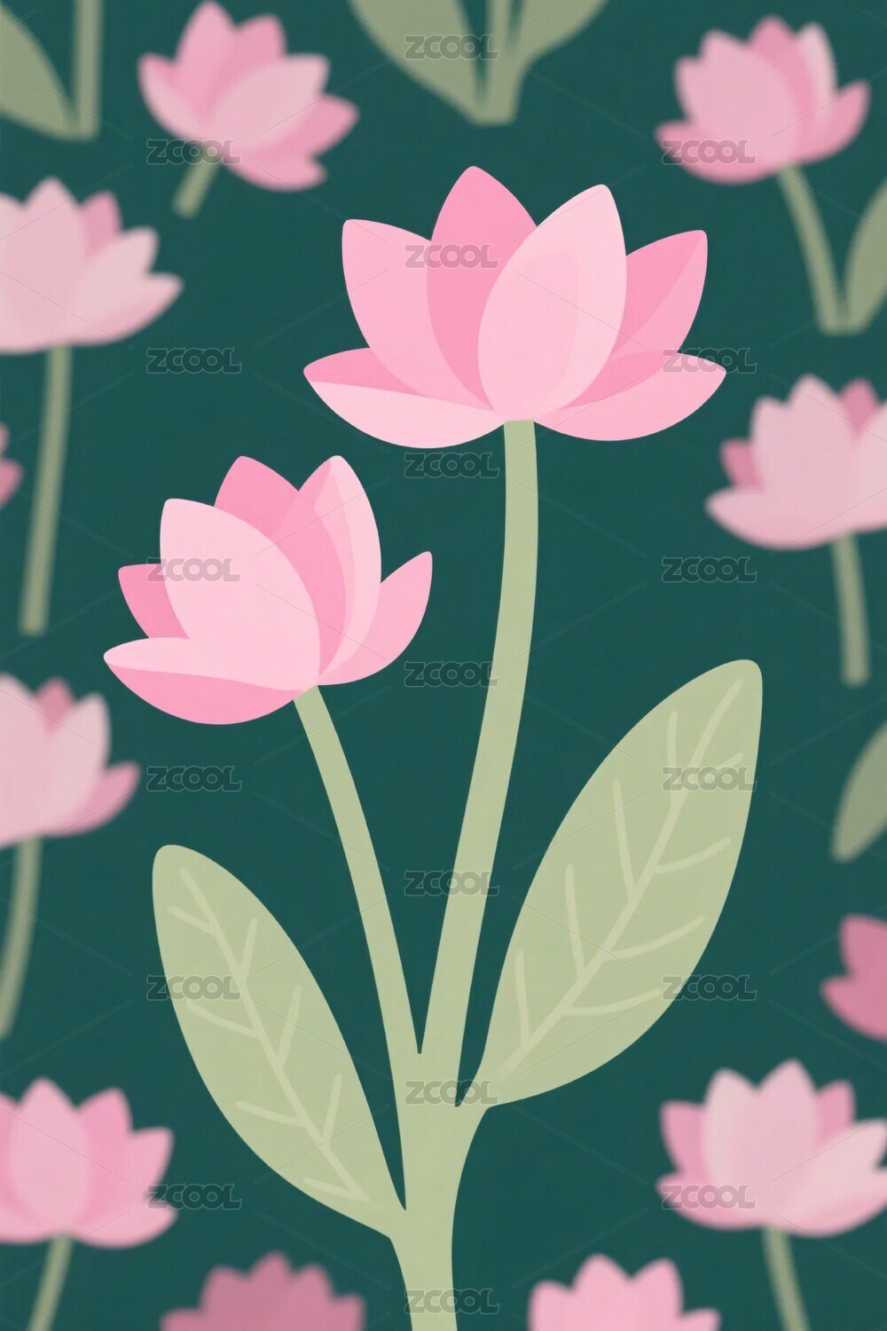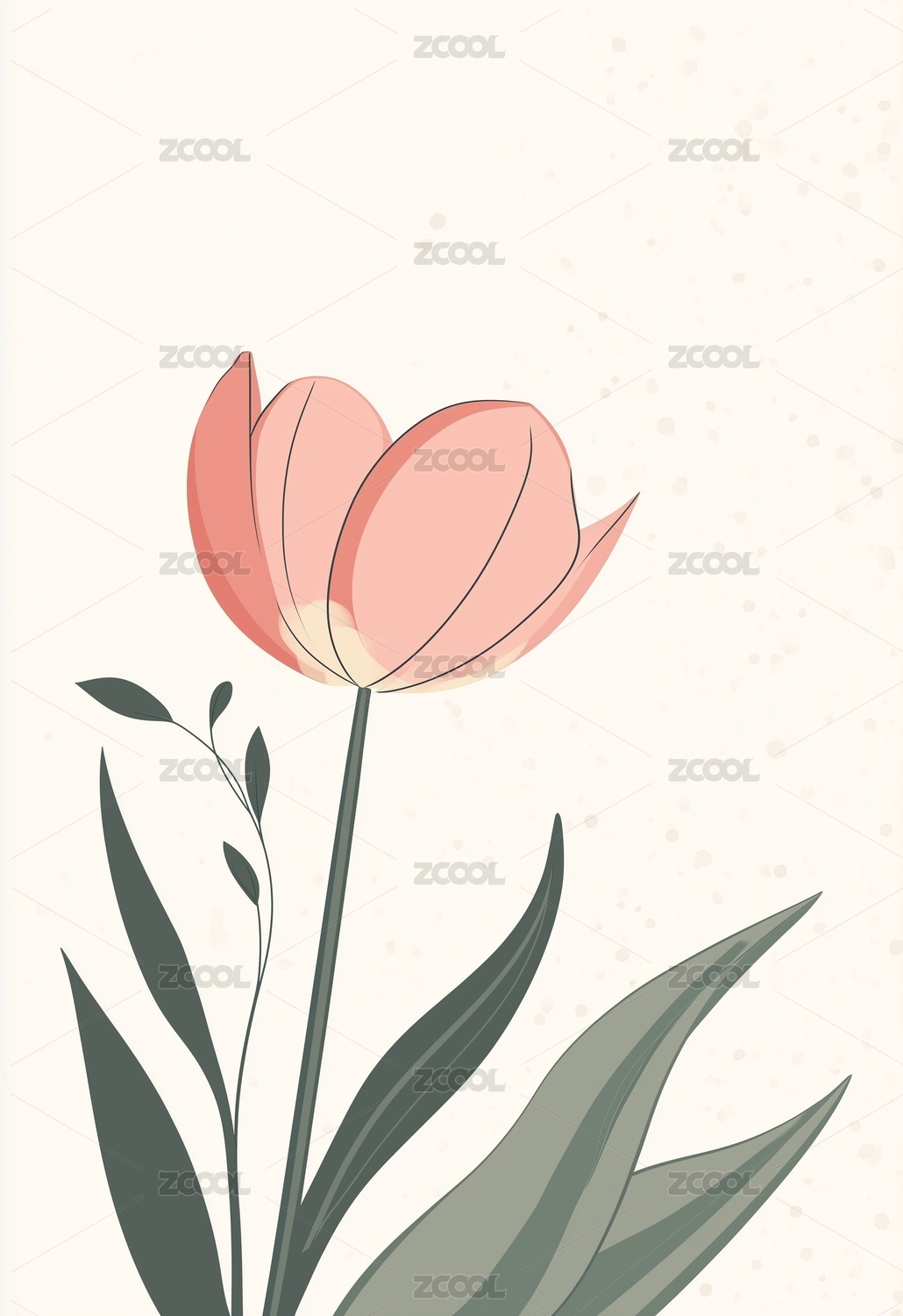 花朵,插画,叶子,植物,简约,粉色,绿色,装饰,平面,自然