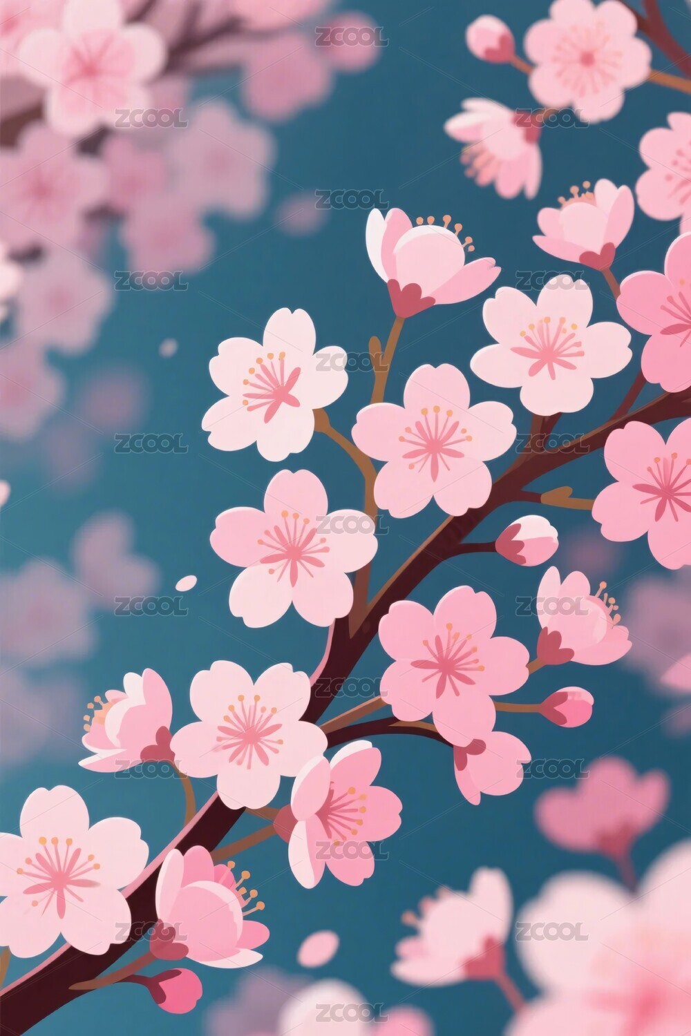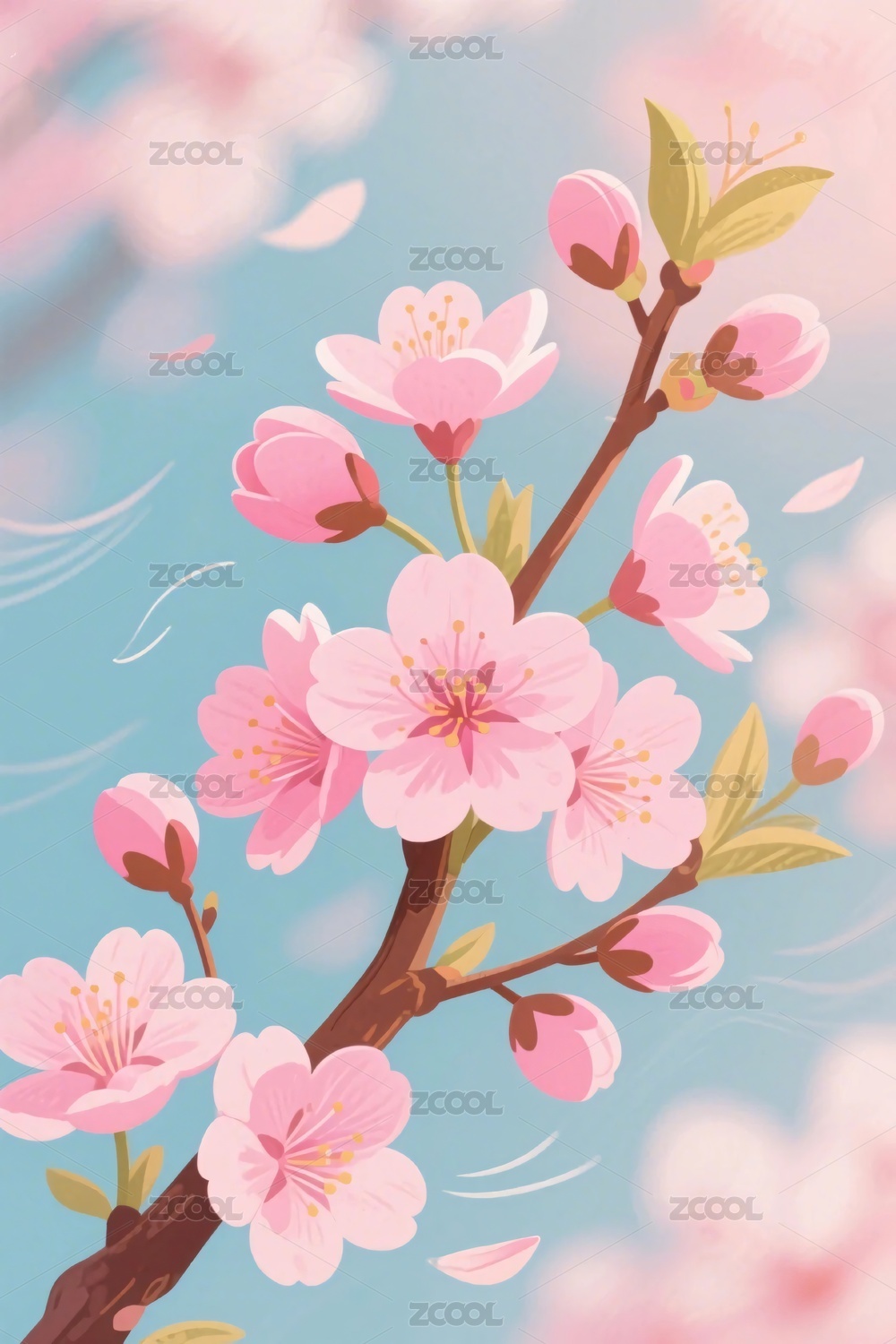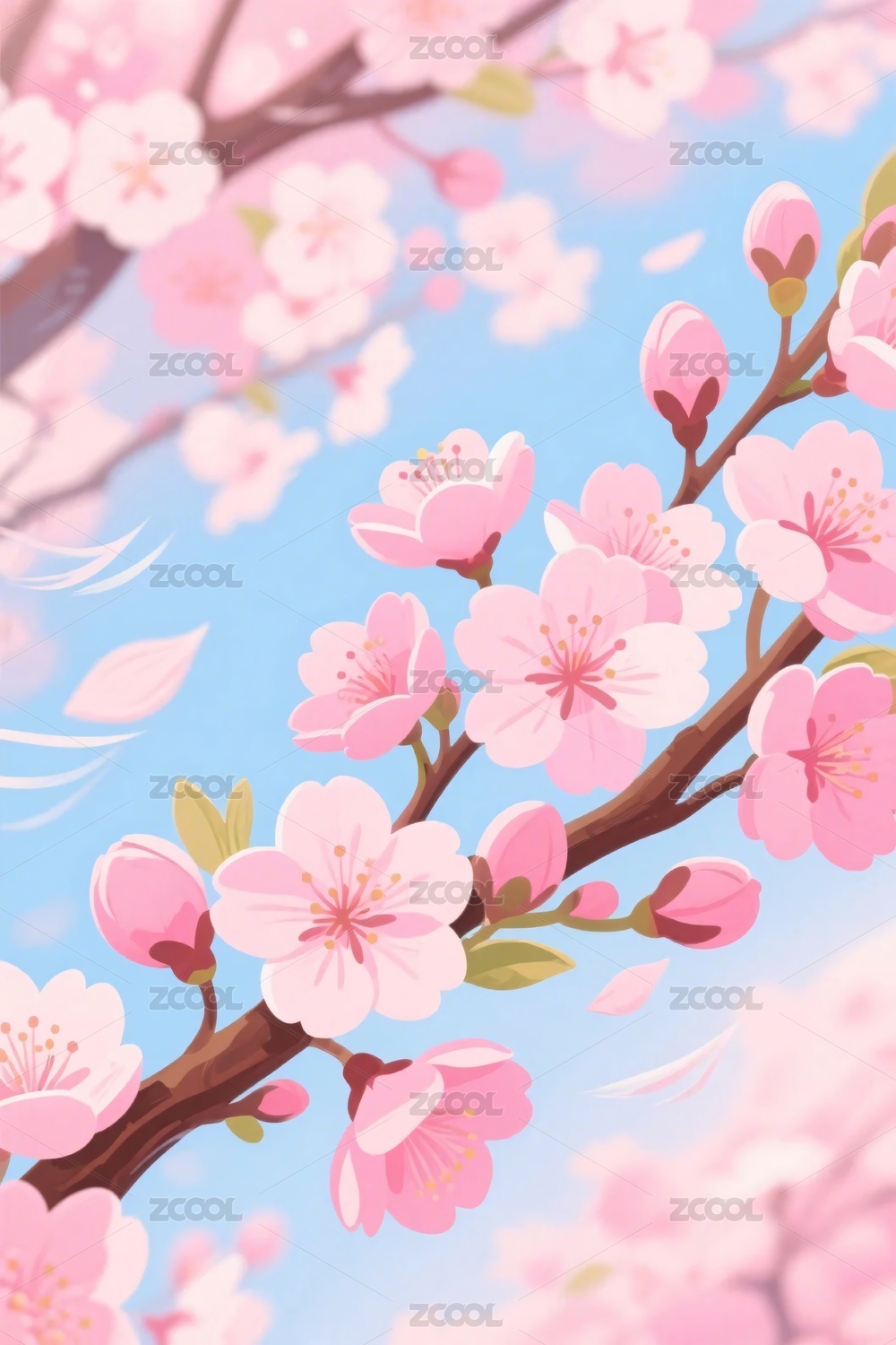 樱花,春天,花朵,樱花树,树枝,山水,远景,插画,风景,绿草