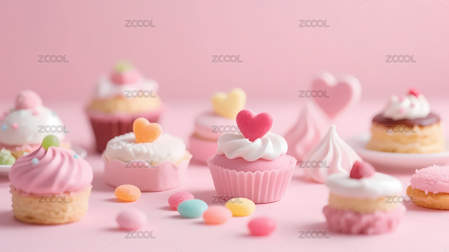 纸杯蛋糕,爱心,装饰,粉色,甜点,饼干,蛋糕,背景,插画,美味