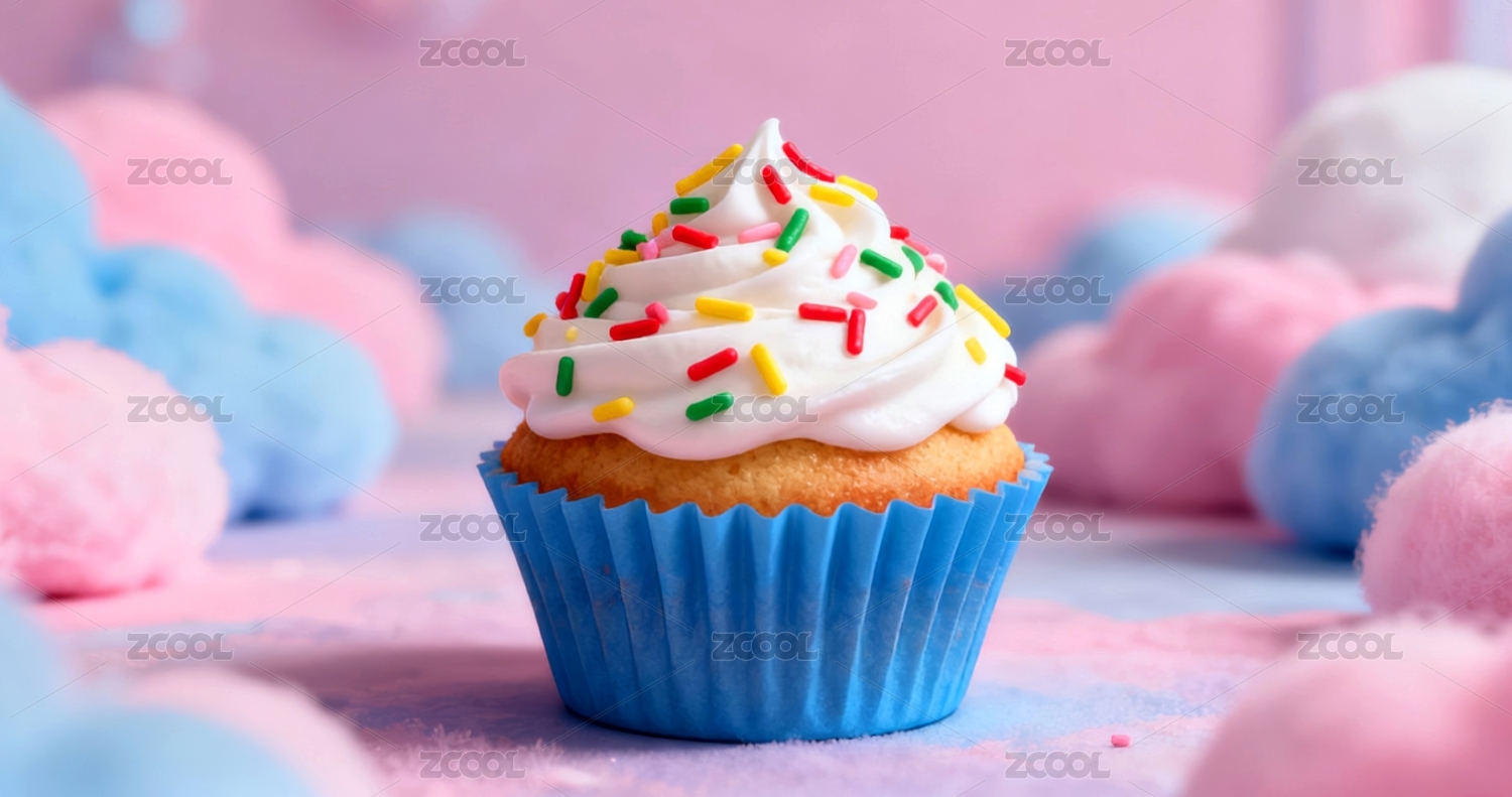 奶油纸杯蛋糕彩色糖屑美食摄影
