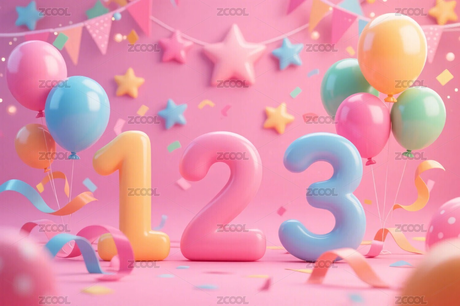 61立体彩色数字 3D渲染 儿童节