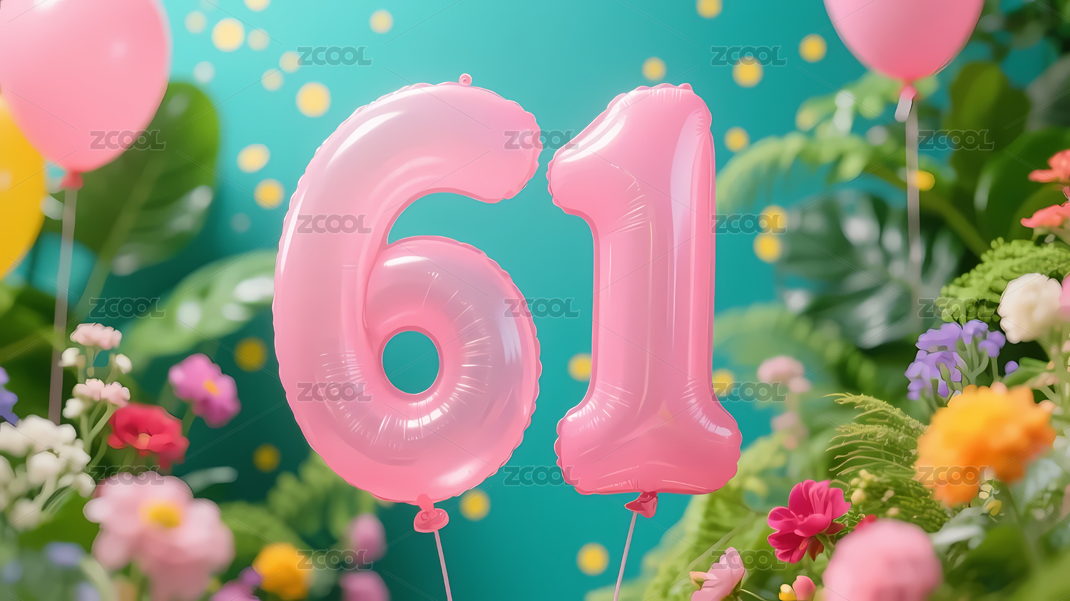 庆祝气球与花朵