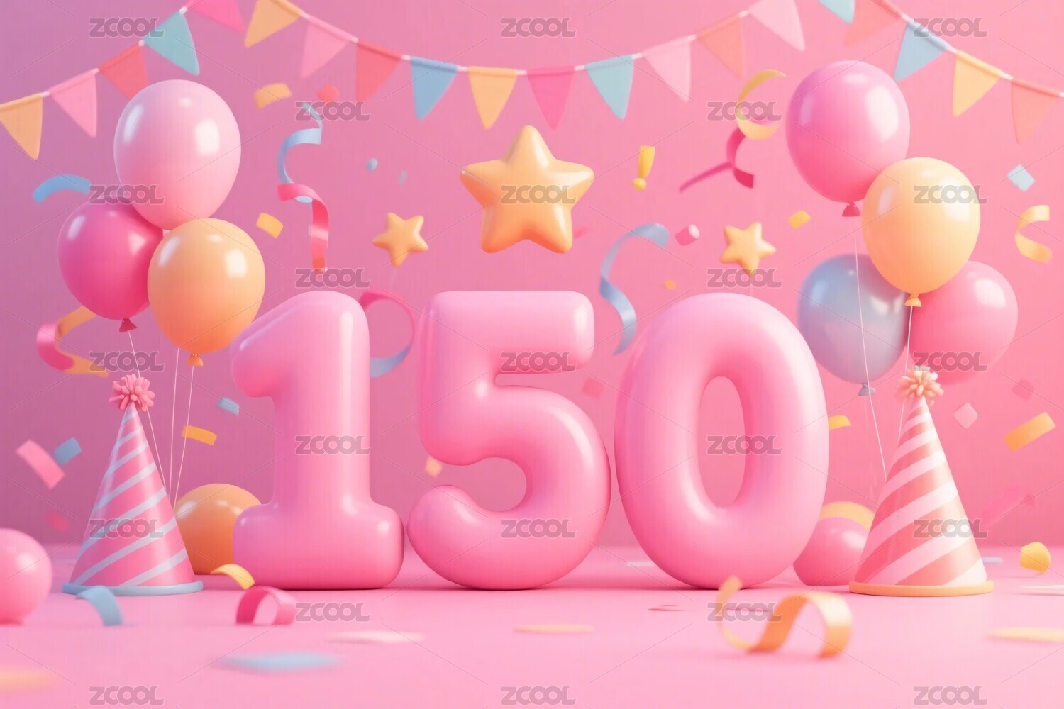 气球,派对帽,彩旗,星星,彩带,彩纸屑,生日,派对,庆祝,插画