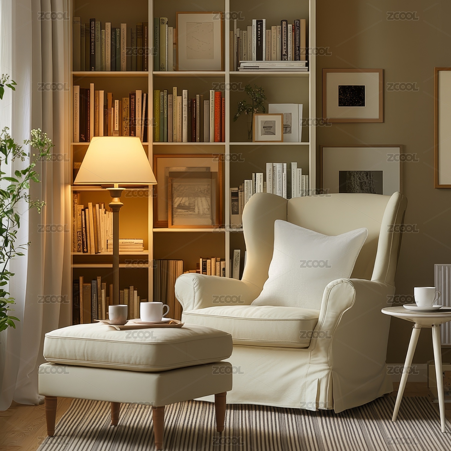 沙发,书架,梯子,装饰画,绿植,墙面,窗帘,抱枕,室内,温馨