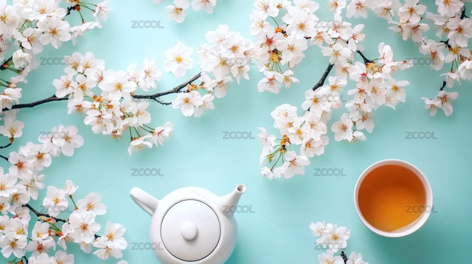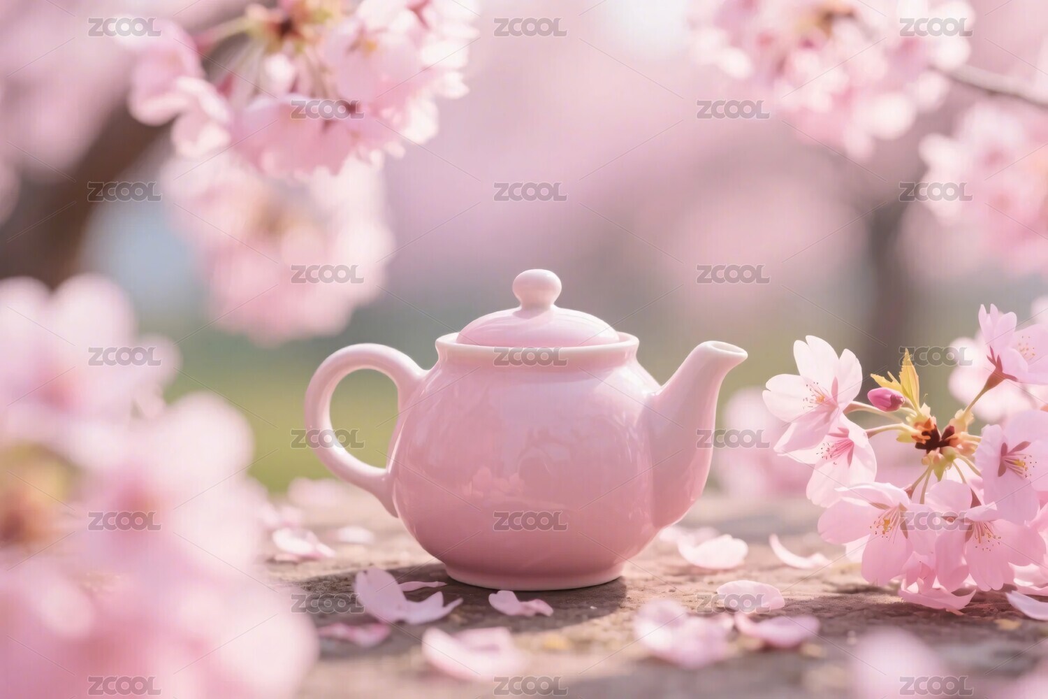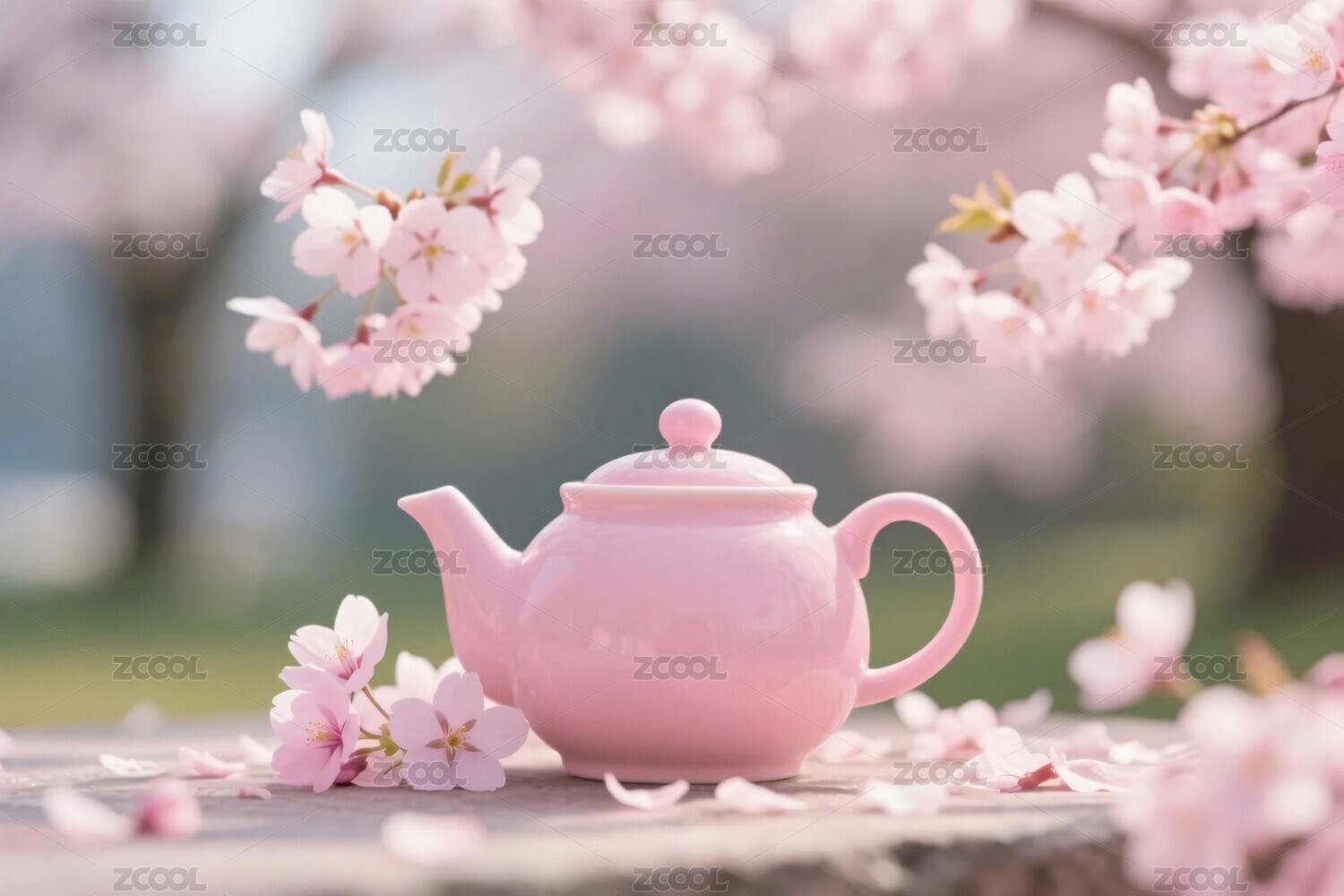 樱花,茶壶,粉色,自然,春季,花卉,插画,茶具,背景,装饰