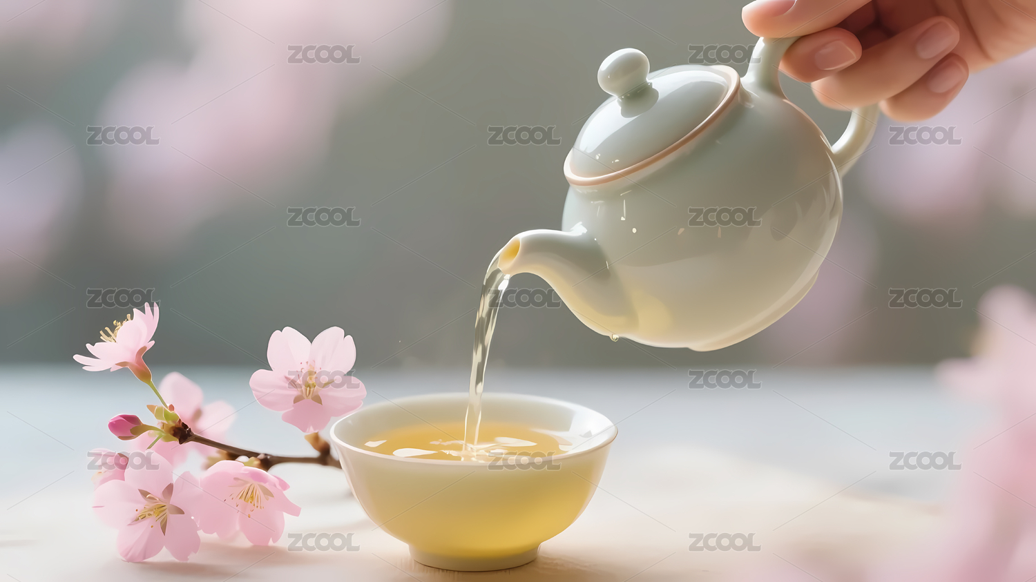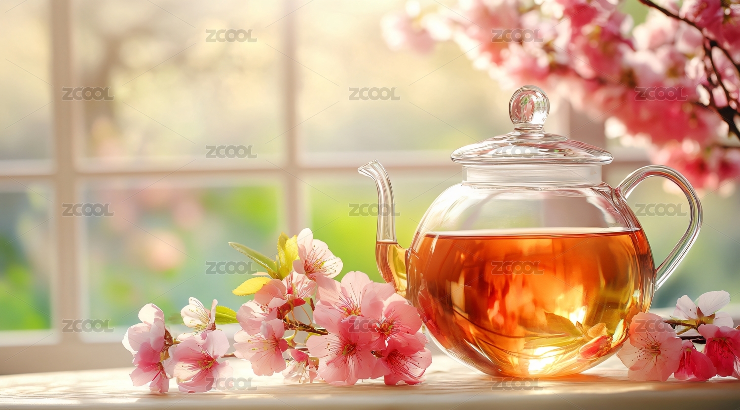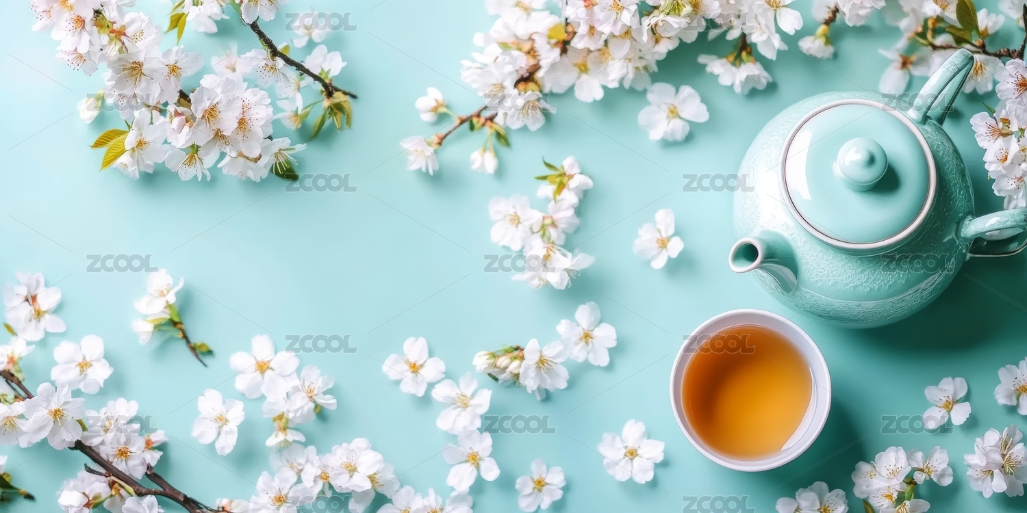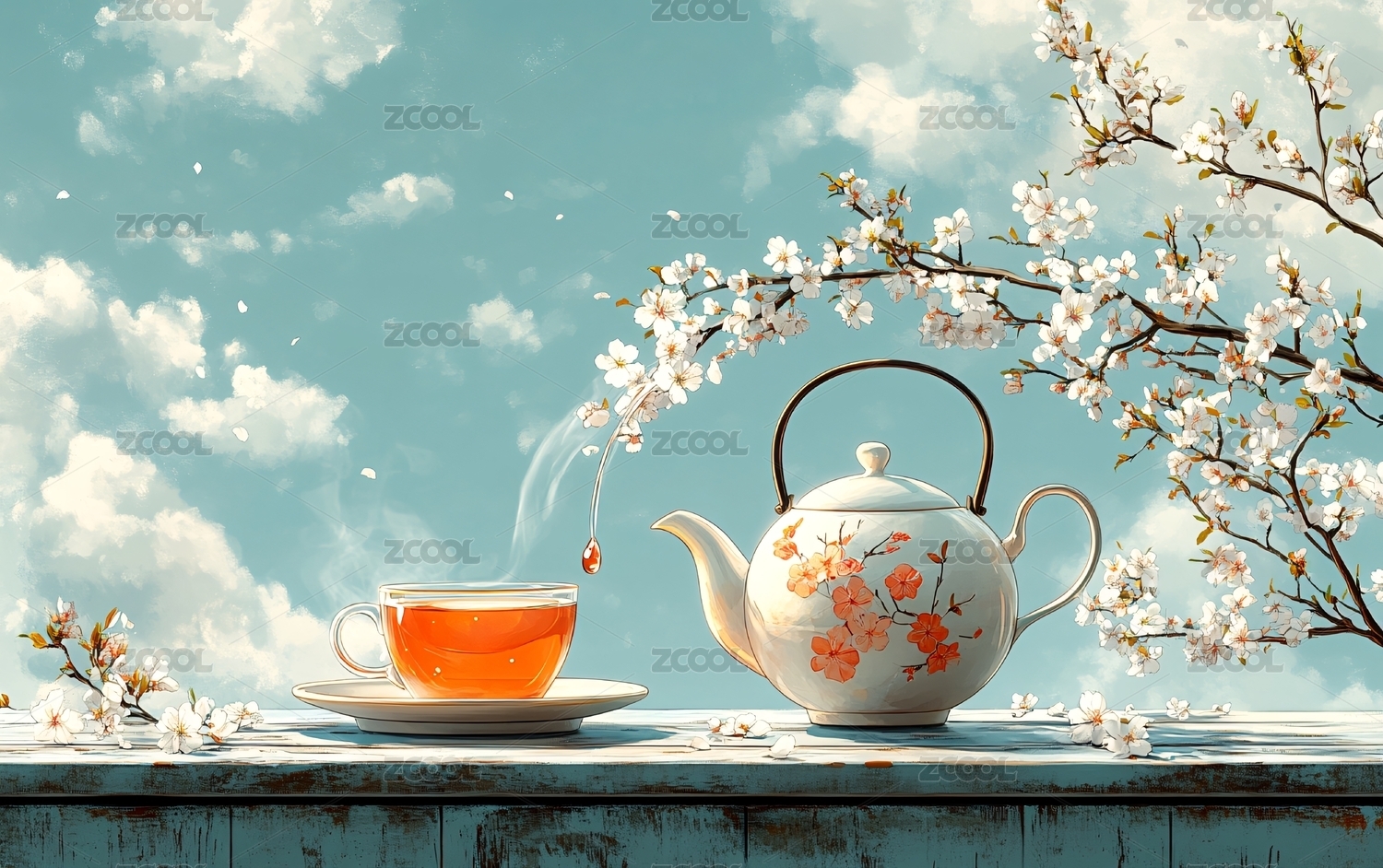樱花,茶壶,粉色,自然,春季,花卉,插画,茶具,背景,装饰