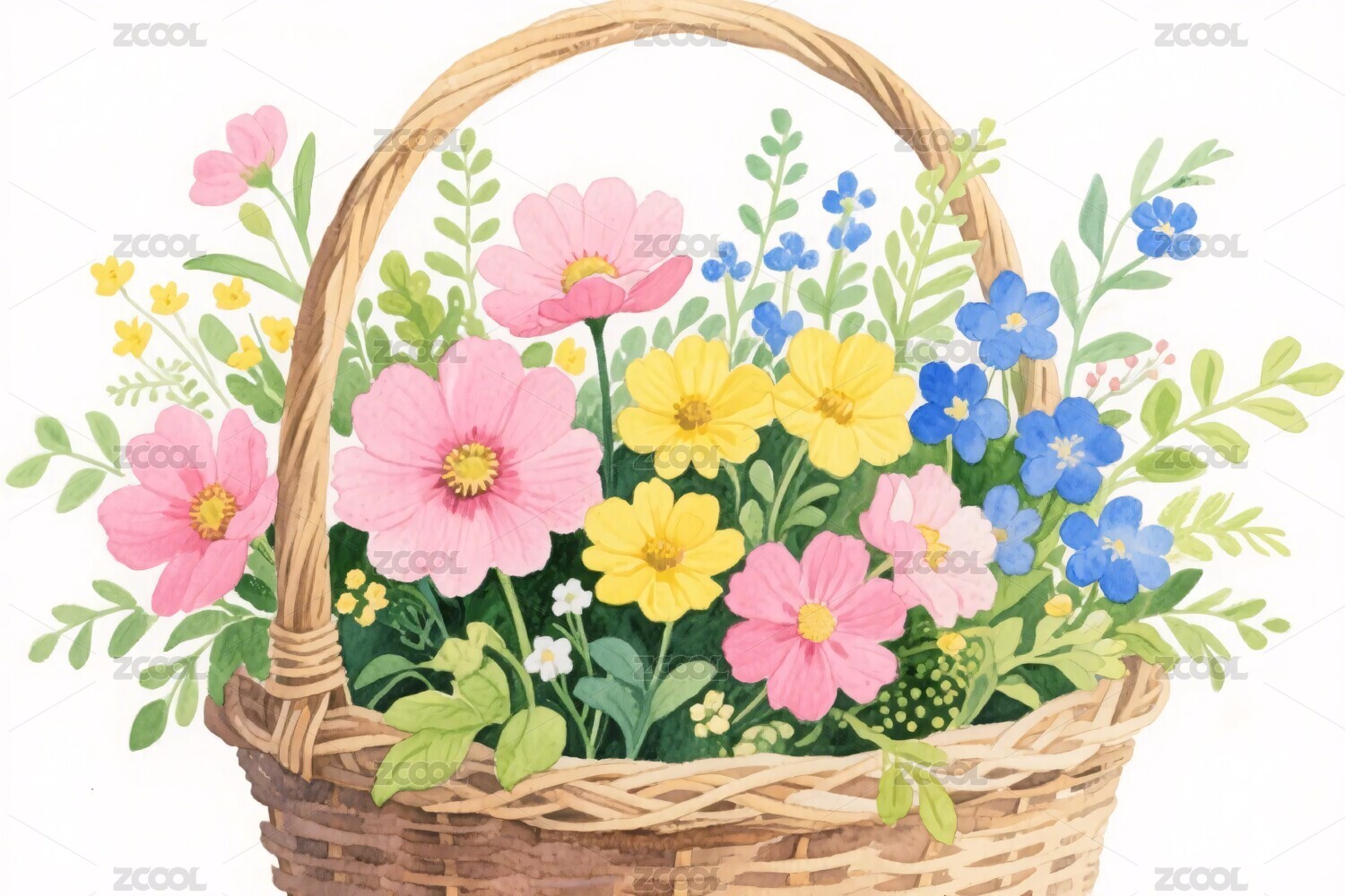 花篮,花朵,水彩,插画,植物,装饰,花卉,篮子,卡通,水彩画