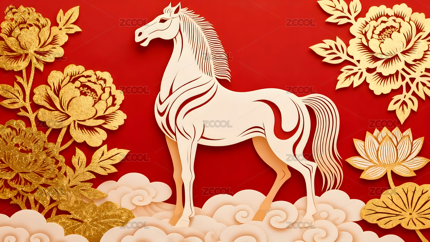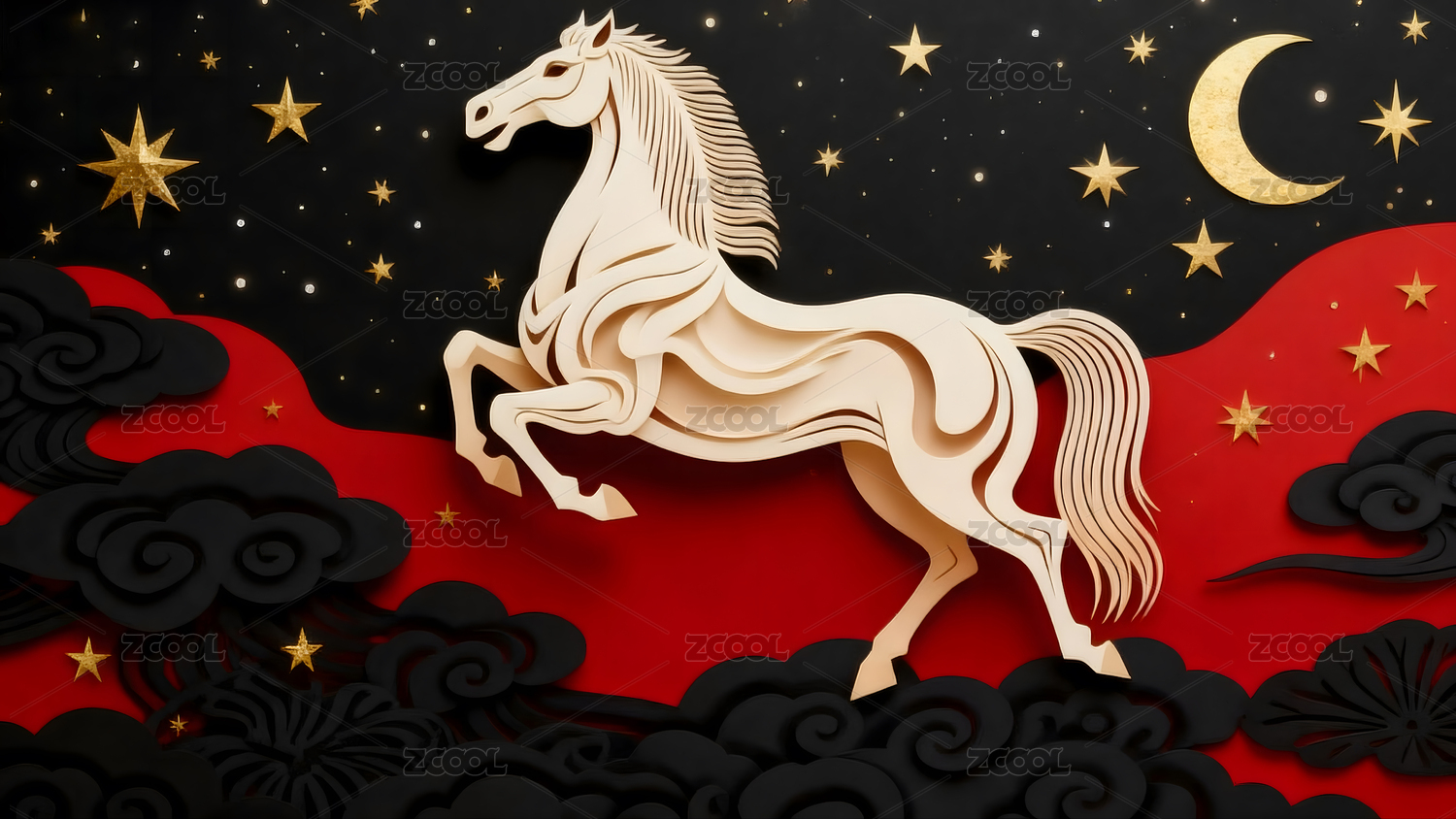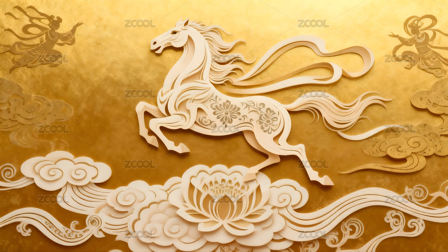 骏马,剪纸,艺术,自然,景观,设计,奔跑,纸艺,十二生肖