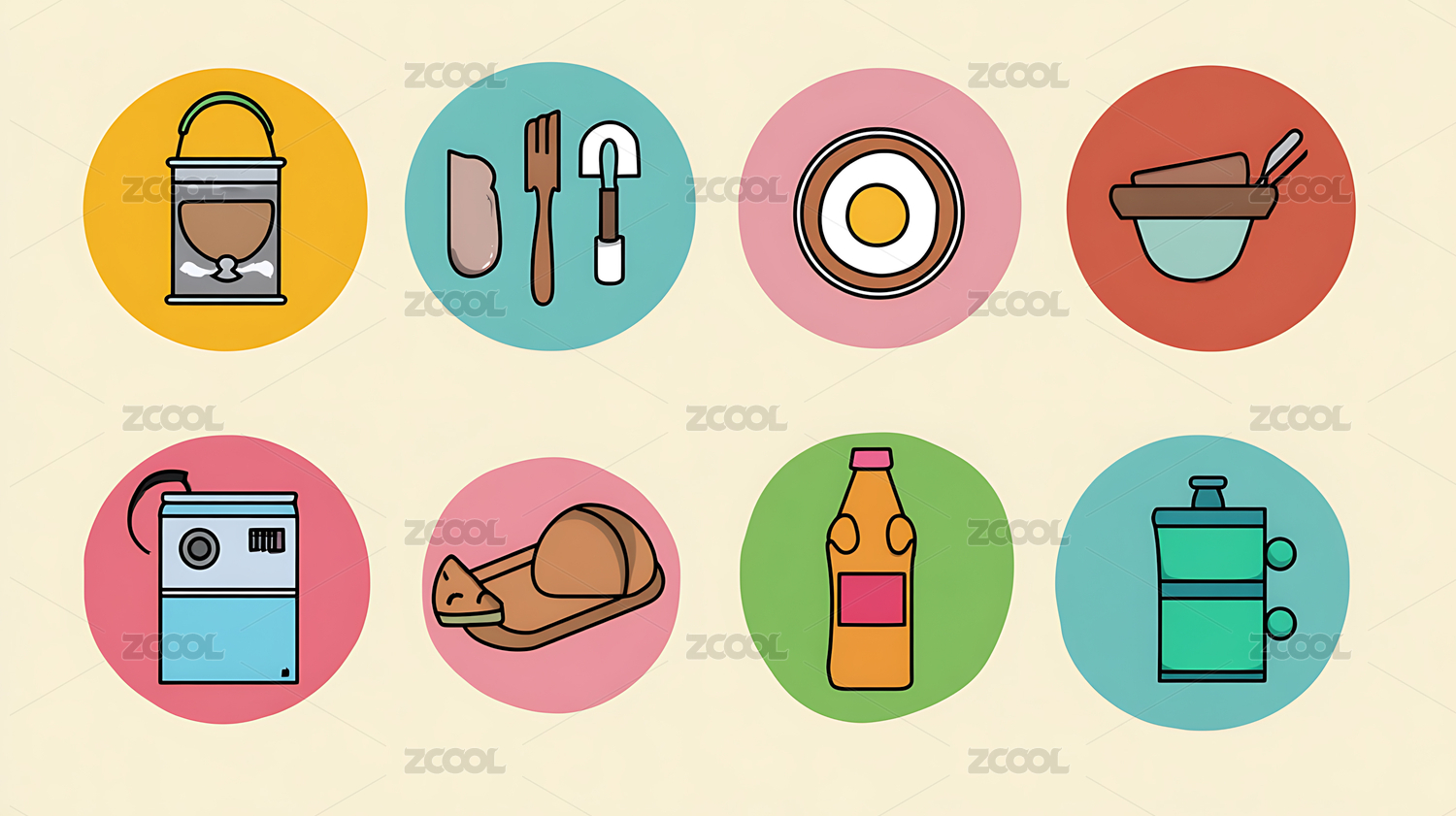 矢量厨具厨房用品烘焙用具家用锅烹饪图标