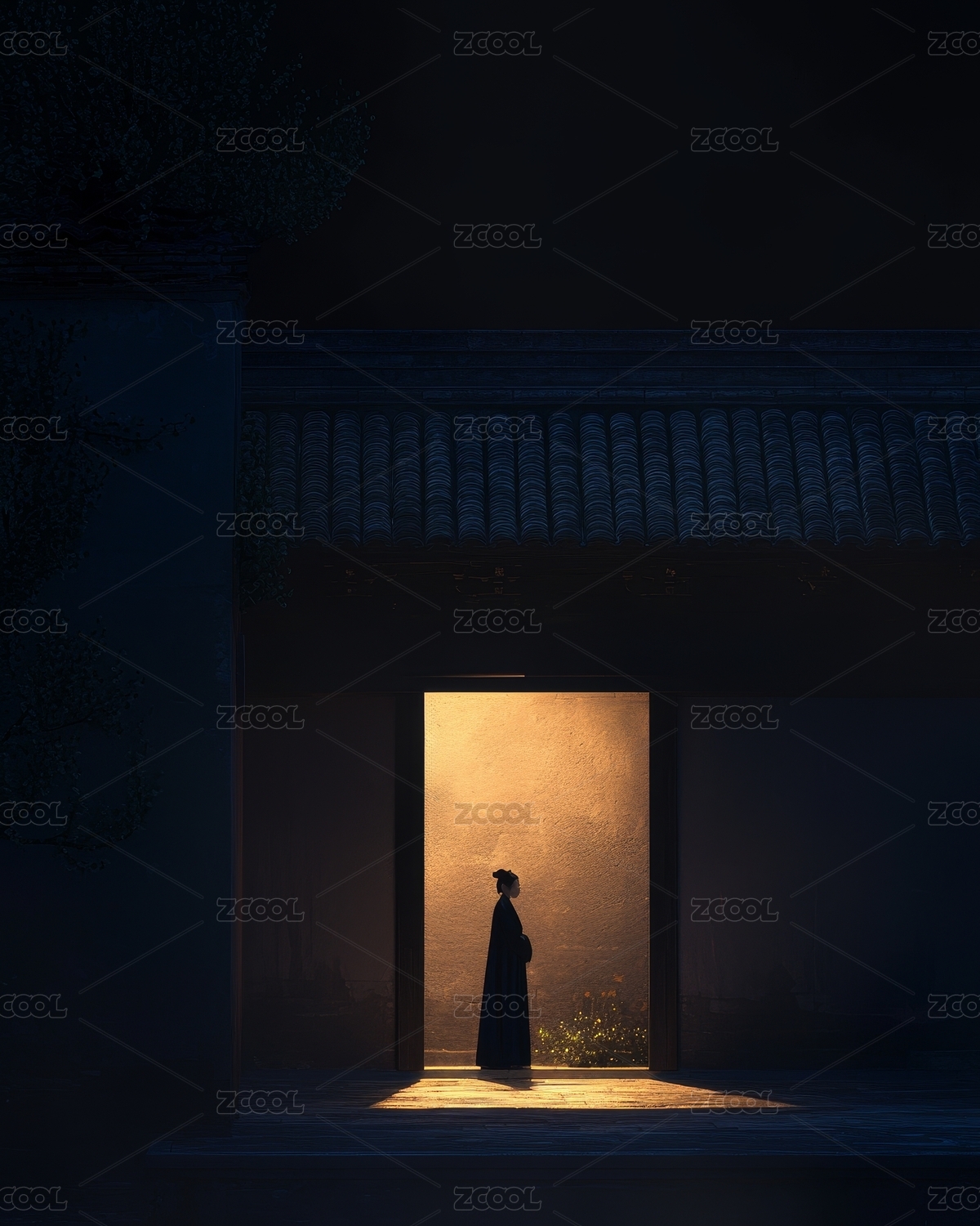 背景,人物,自然,光影,静谧,空旷,传统,服饰,长袍,白裙