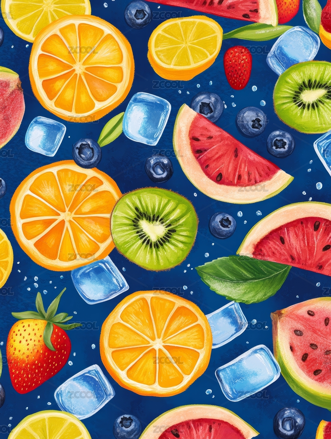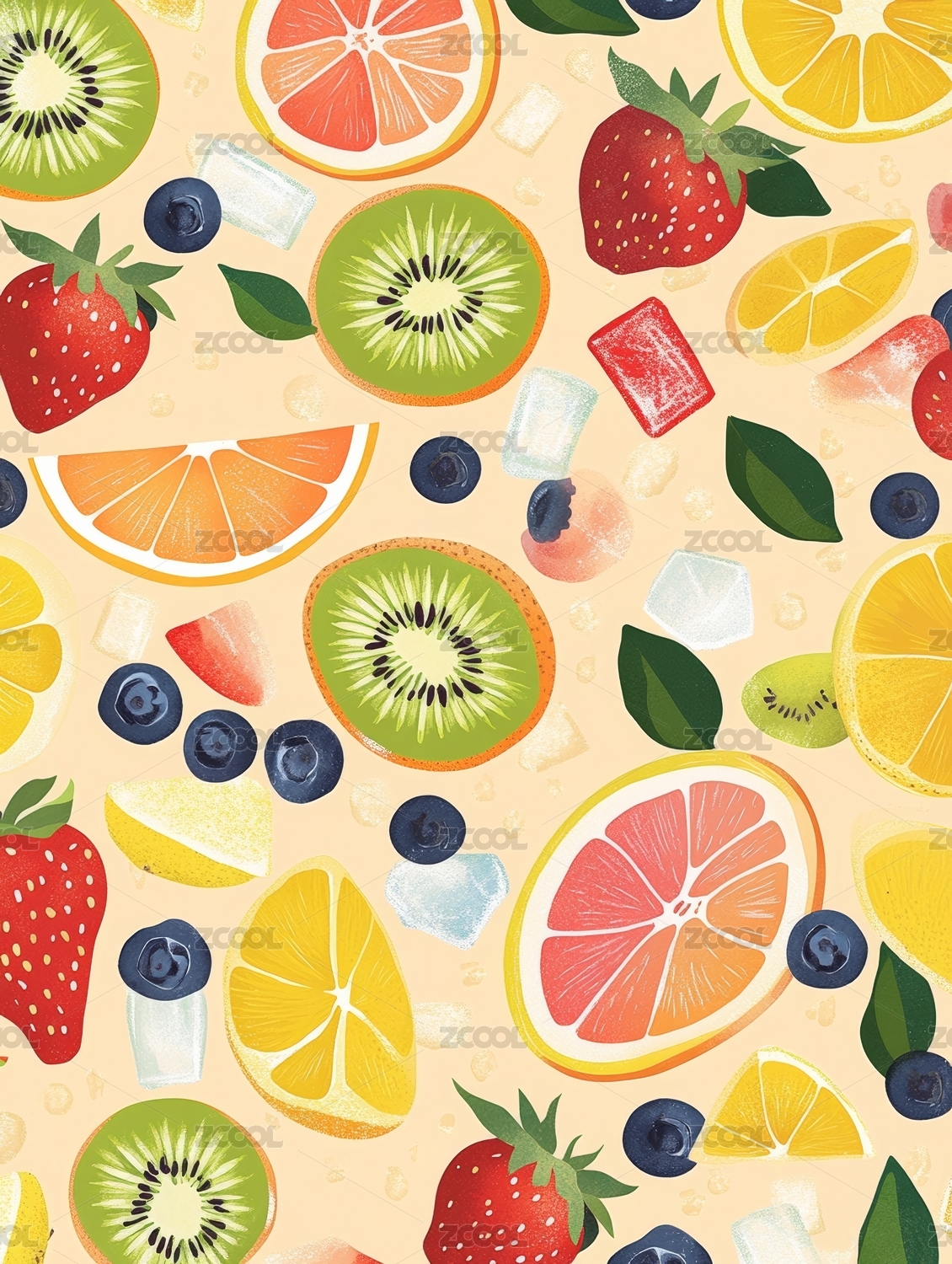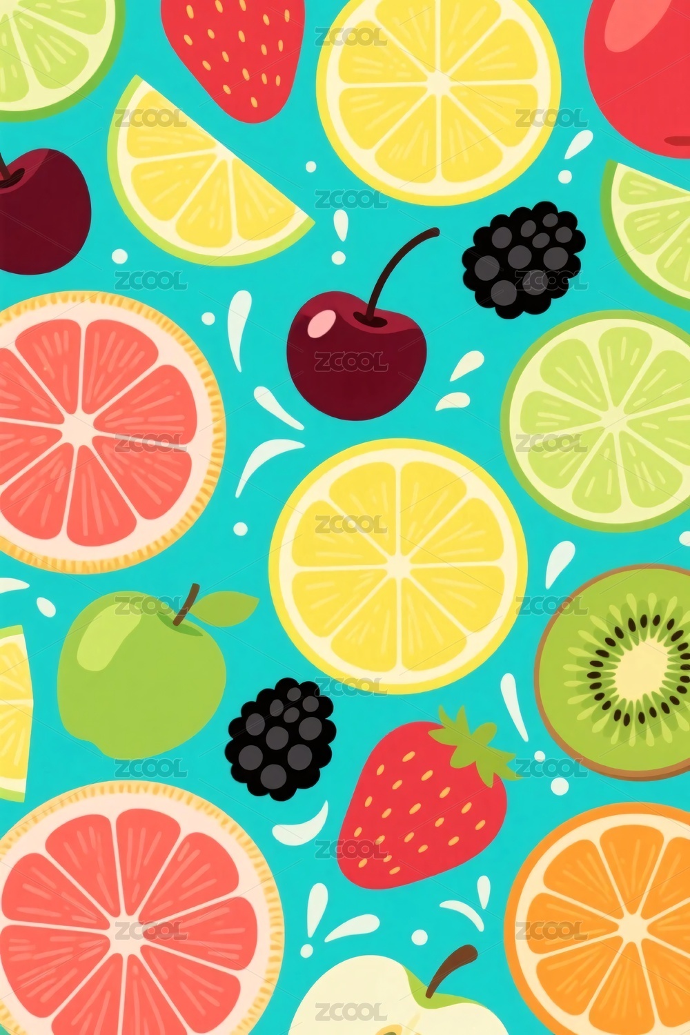 水果,插画,多彩,鲜果,苹果,猕猴桃,草莓,樱桃,蓝莓,柠檬