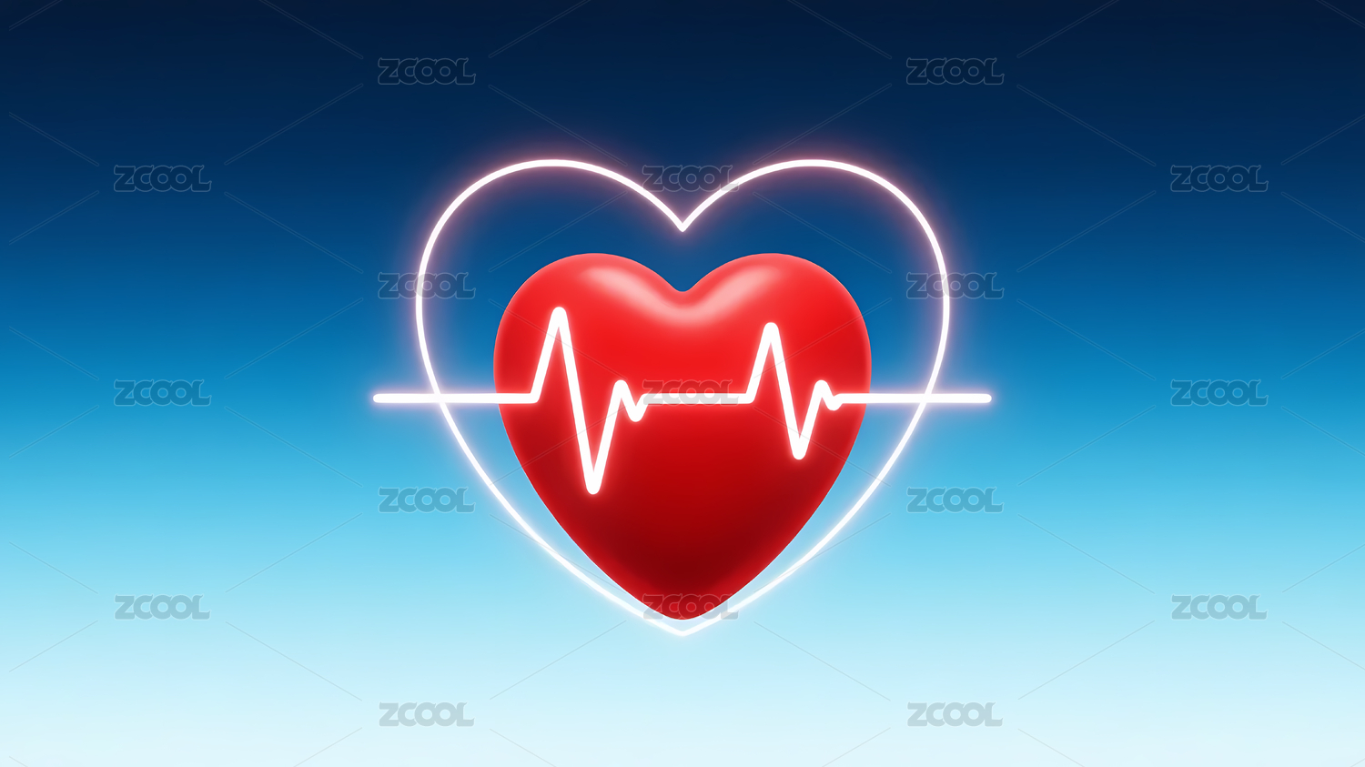 红色心形与心电图线条