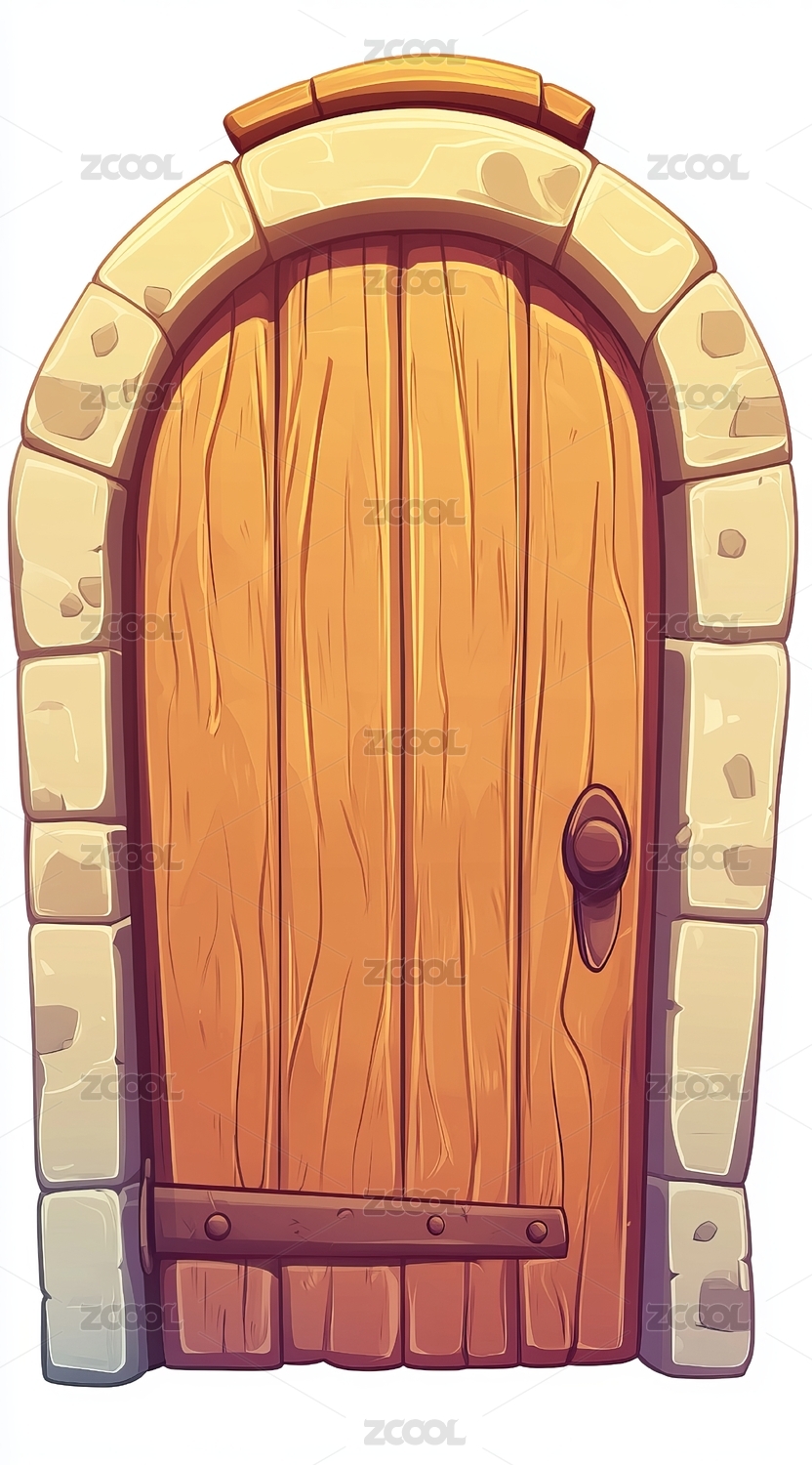 木门,砖石,插画,卡通风格,古堡门,拱形门,石门,复古门,门环,卡通