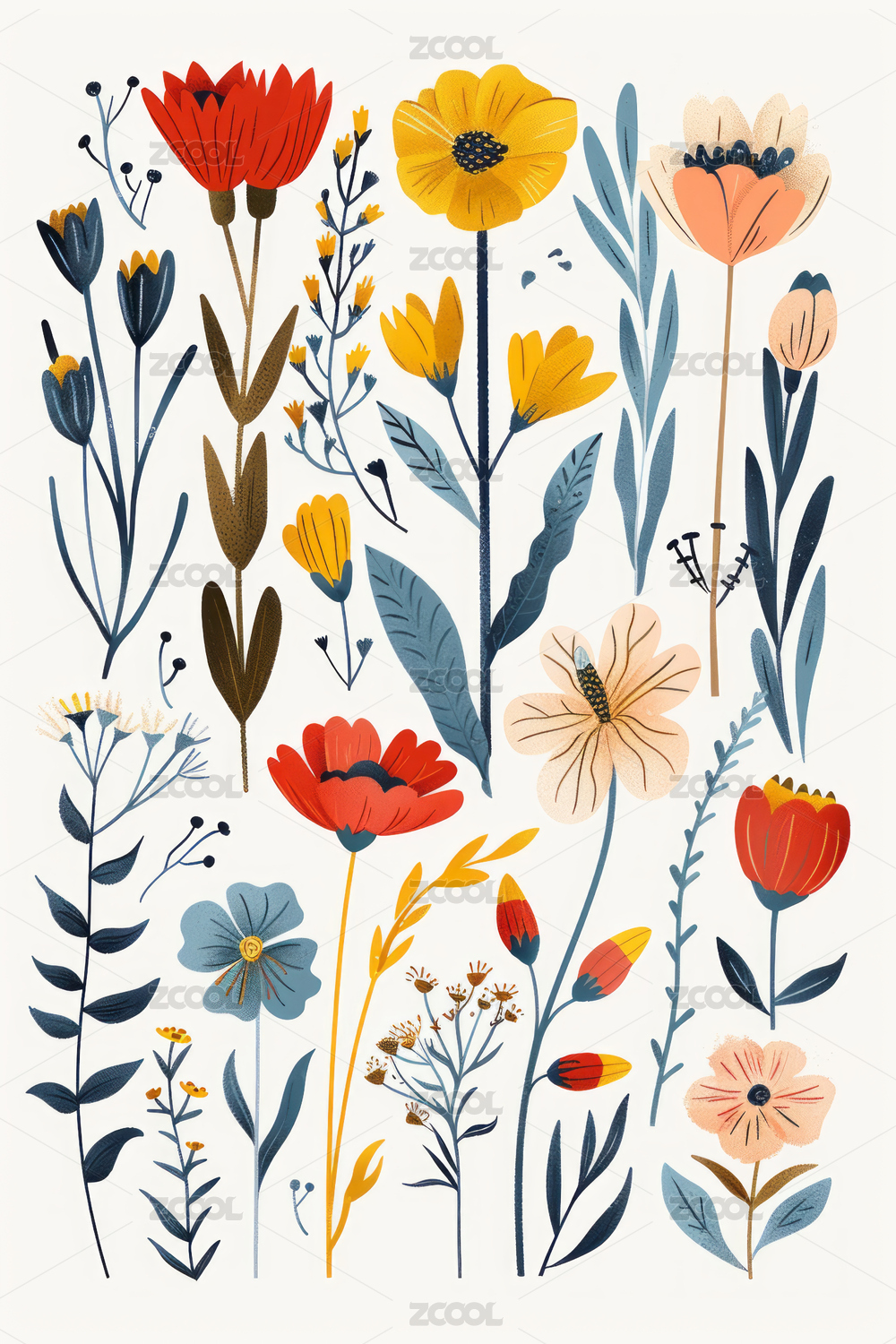 数码复古彩色梦幻花朵装饰抽象海报背景