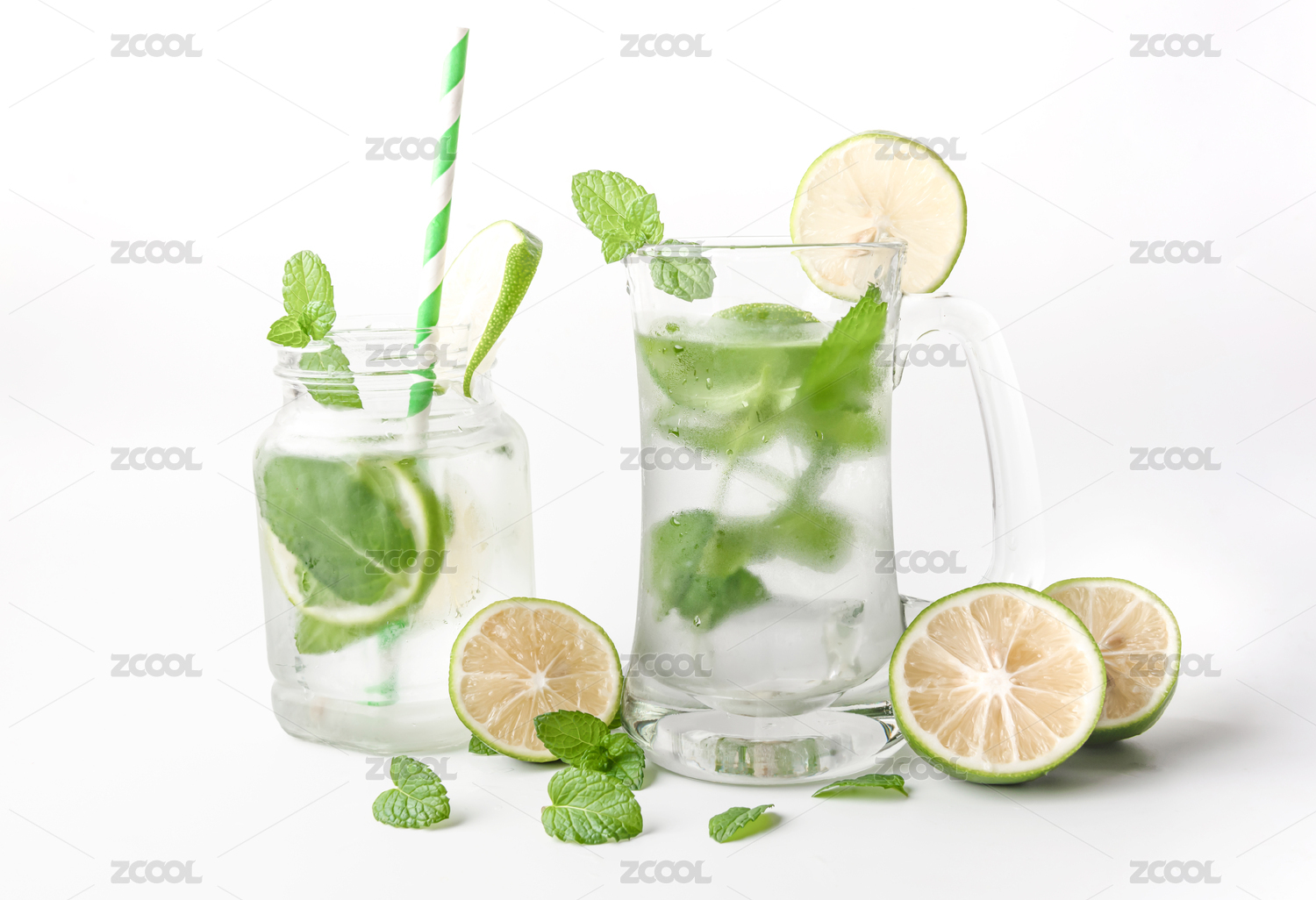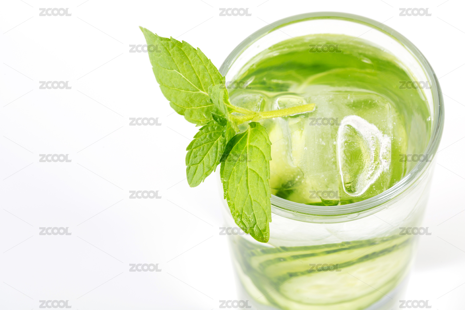 饮品,饮料,玻璃杯,柠檬片,薄荷叶,冰块,清爽,插画,模板,清新