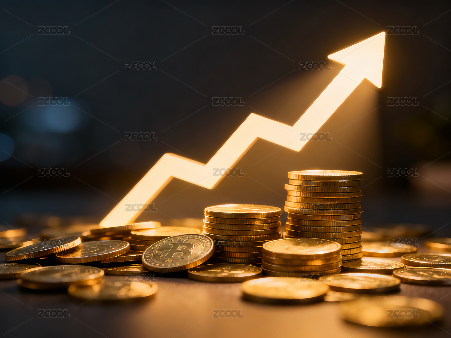 金色硬币堆与箭头象征财富增长