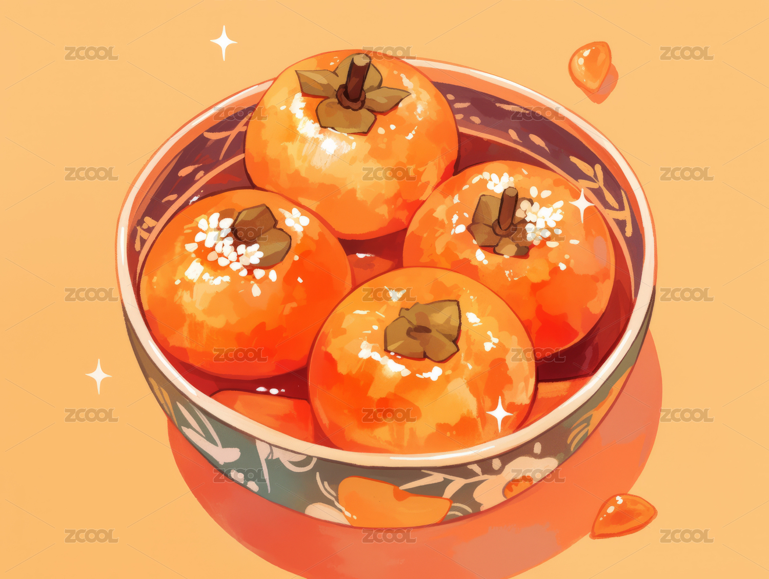 插画,食物,柿子,背景,壁纸,竹筐,红色,丰收,秋天,红叶