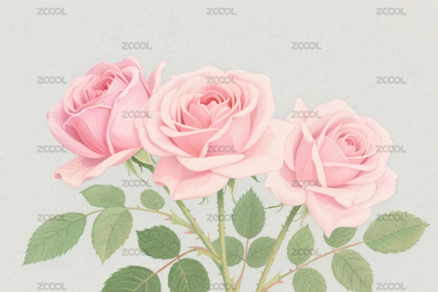 淡粉色玫瑰花插画