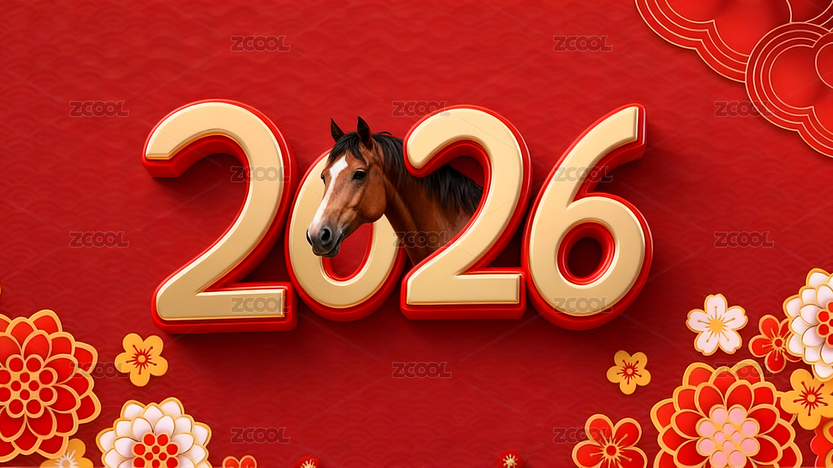 2026,马年,春节,喜庆,数字,生肖马,灯笼,花卉,贺岁,节日