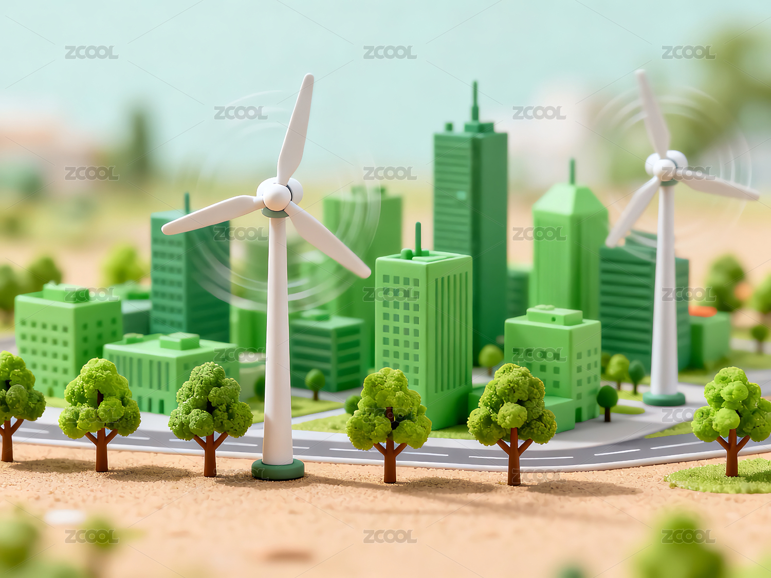模型,微景观,城市,建筑,绿色,环保,新能源,风车,涡轮机,道路