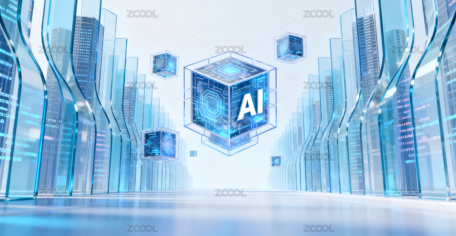 人工智能,大数据,模型,AI芯片,背景,几何体,抽象,数据流,传输,蓝色
