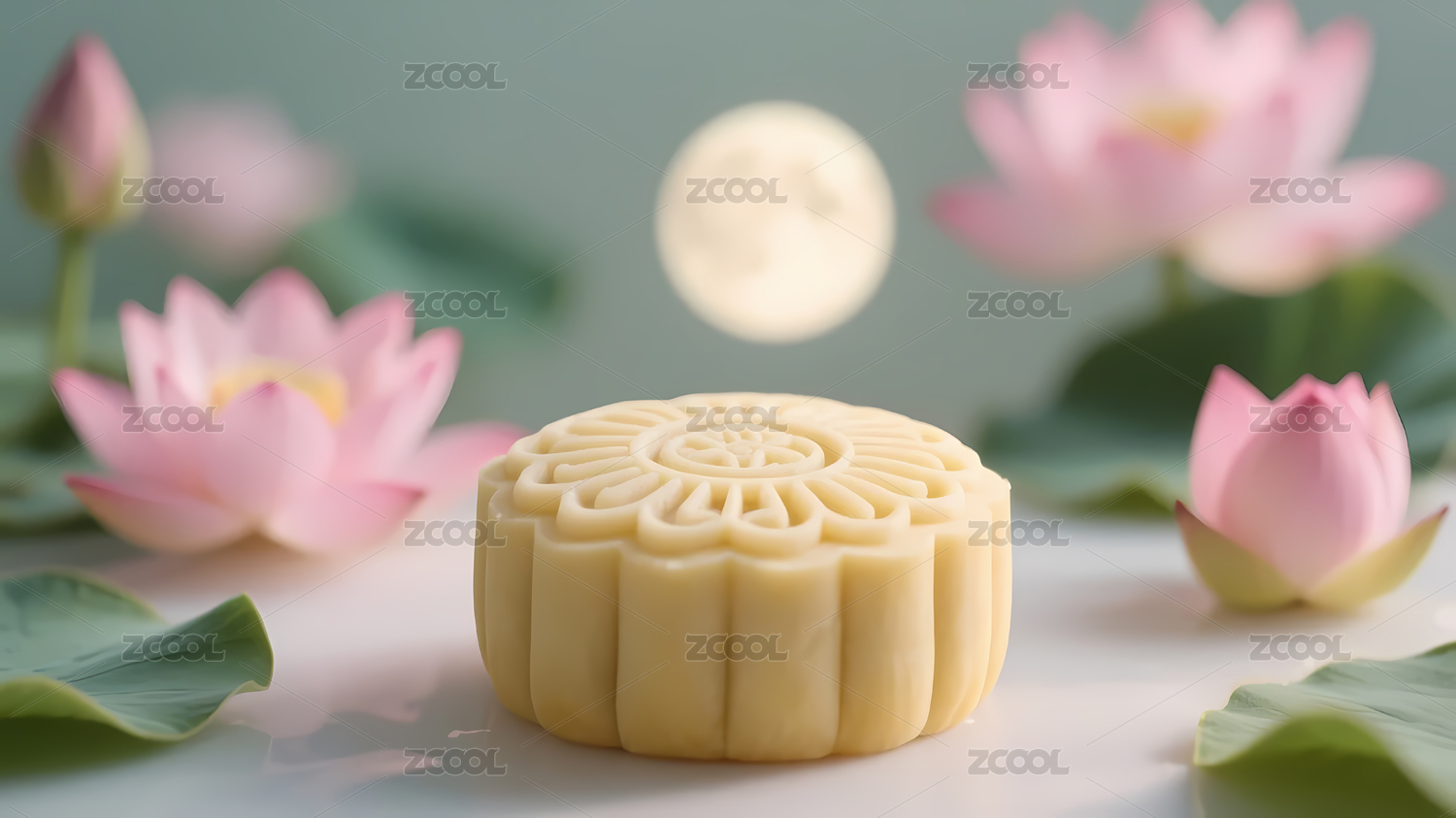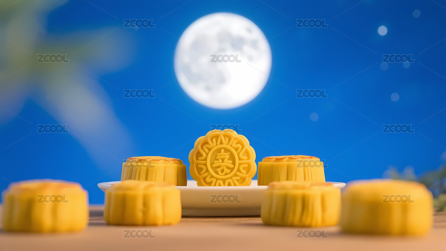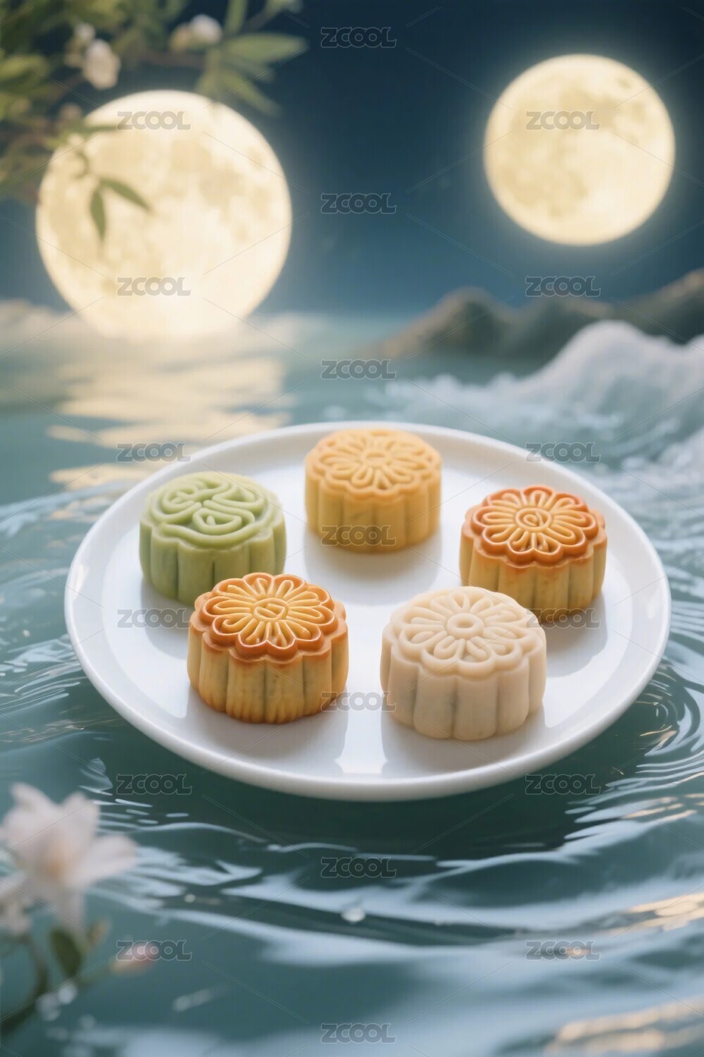 月饼,月亮,中秋,云朵,盘子,传统,甜点,装饰,插画