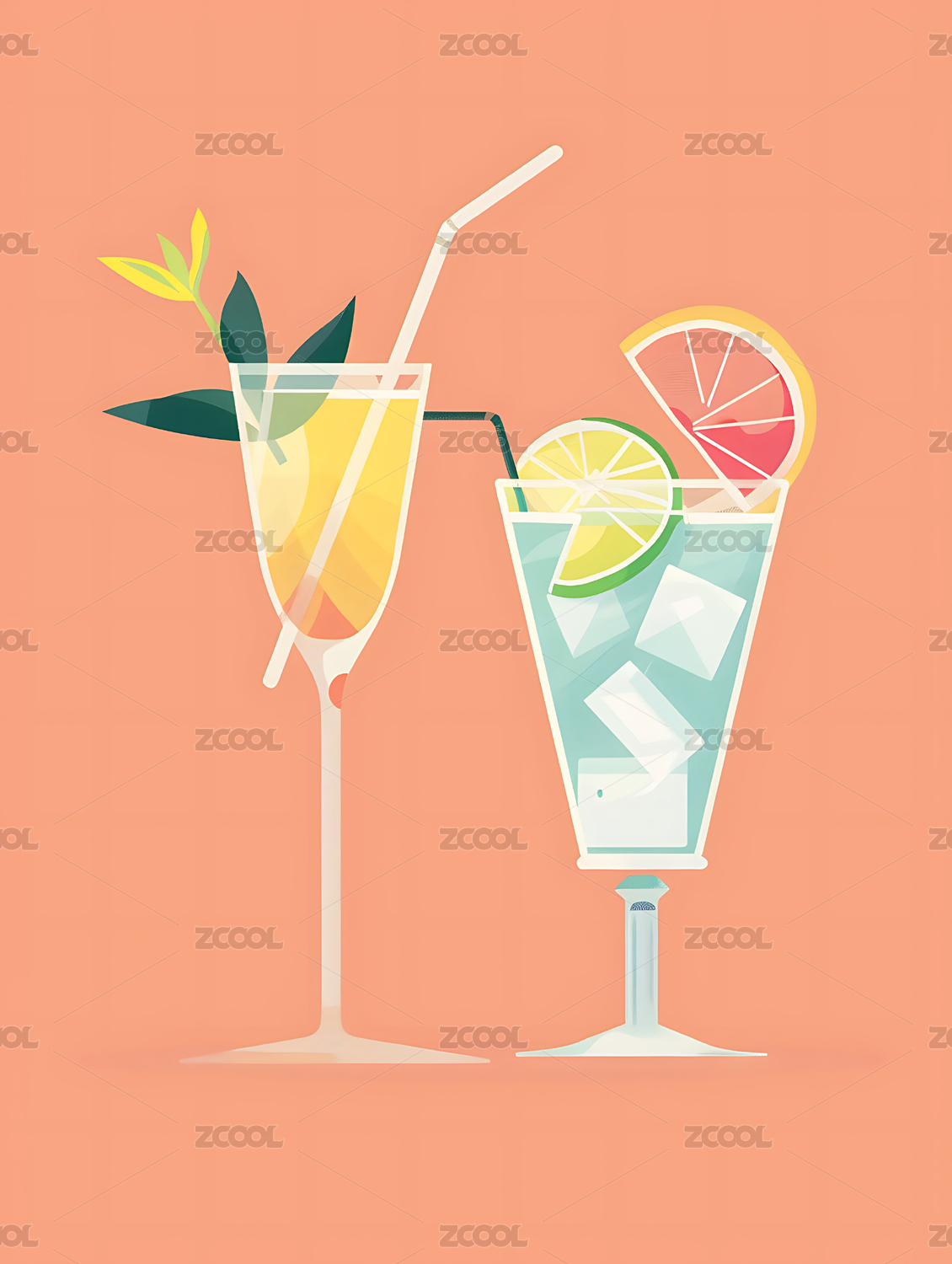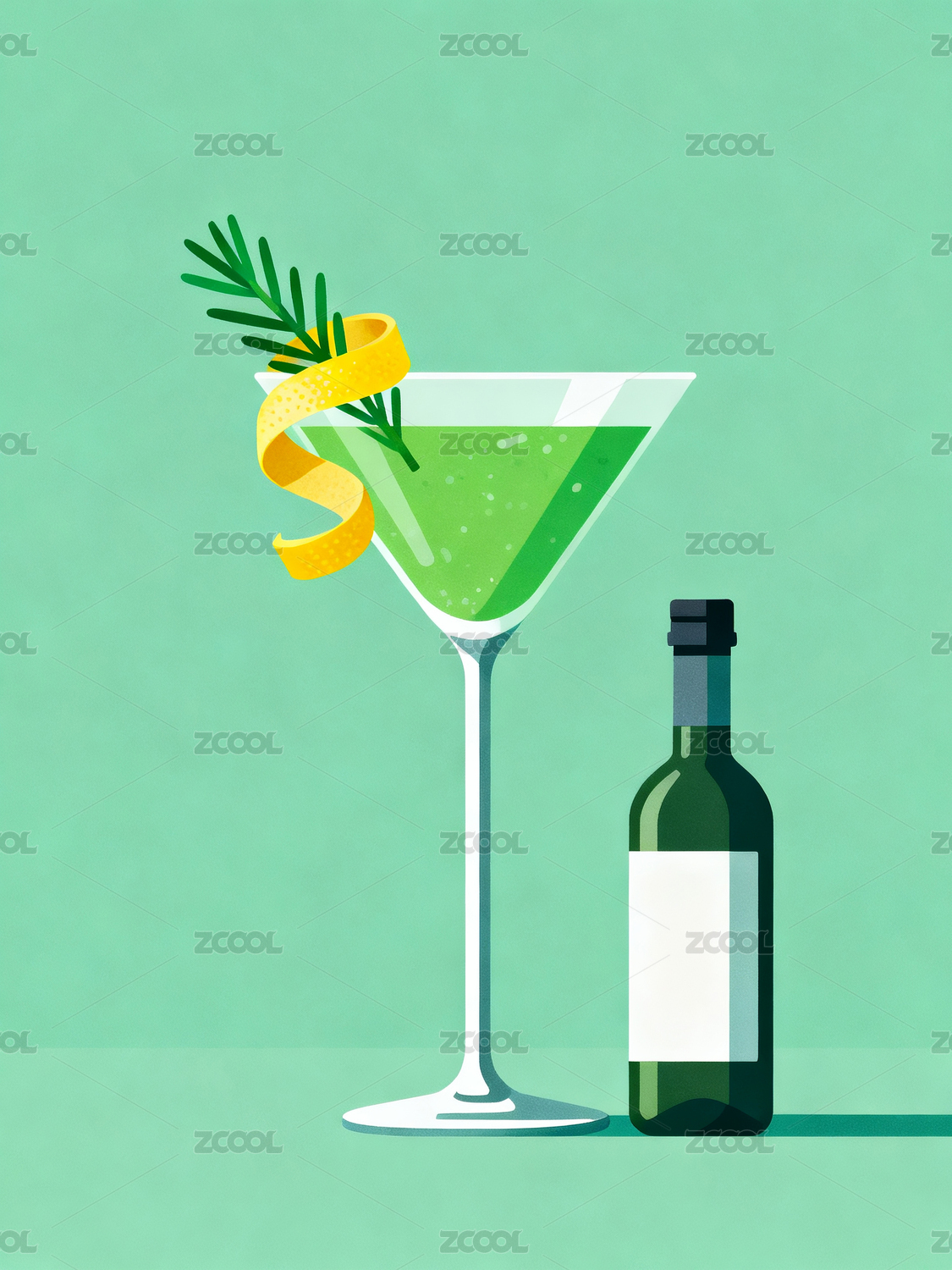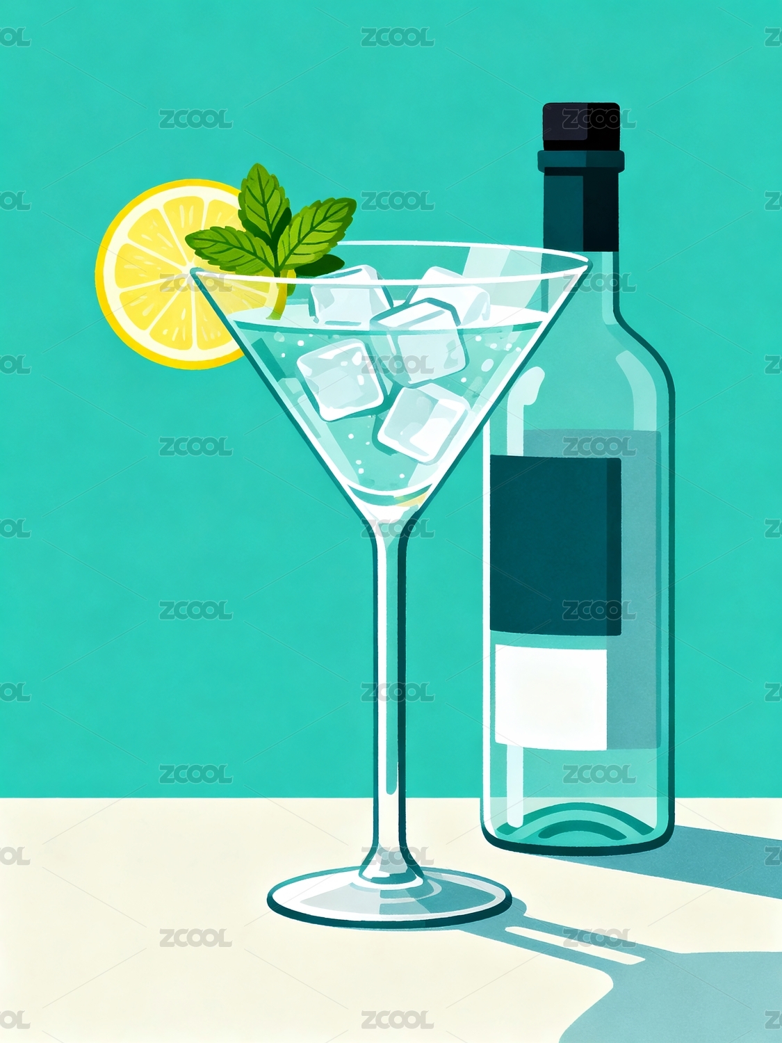 酒瓶,鸡尾酒杯,饮品,装饰,插画,图标,扁平化,简约,饮料,酒杯