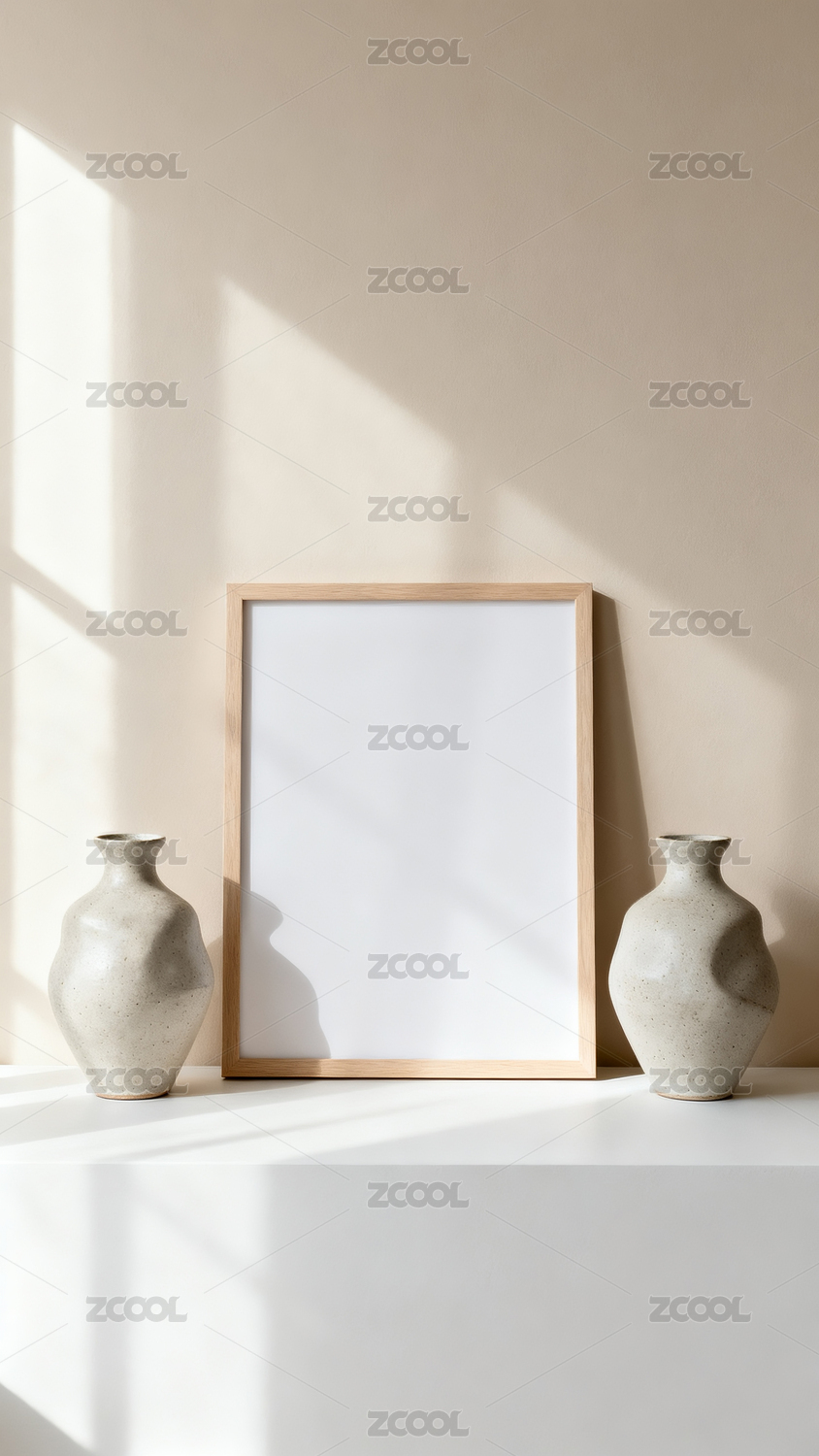 简约相框书桌台灯纯色背景商业广告海报壁纸