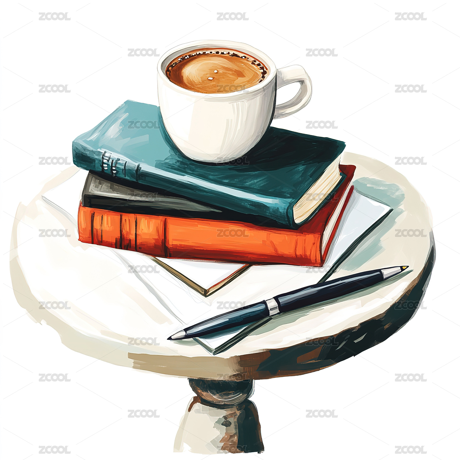咖啡杯,笔记本,钢笔,桌面,文件,办公,创作,设计,插画,矢量
