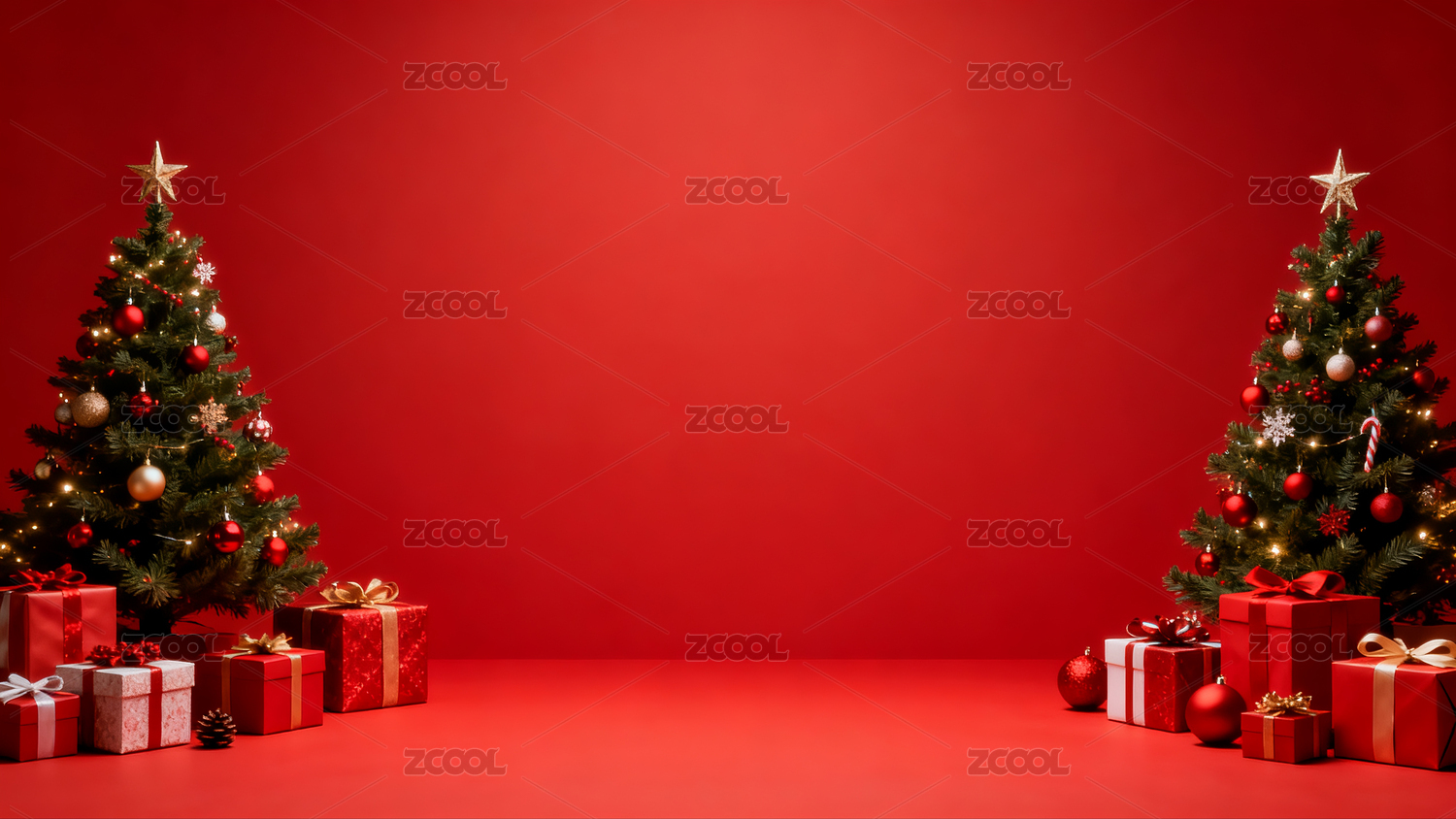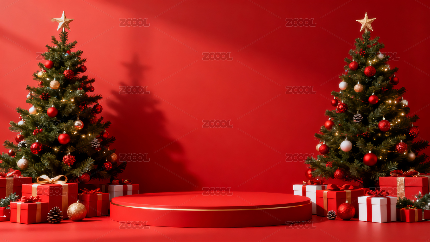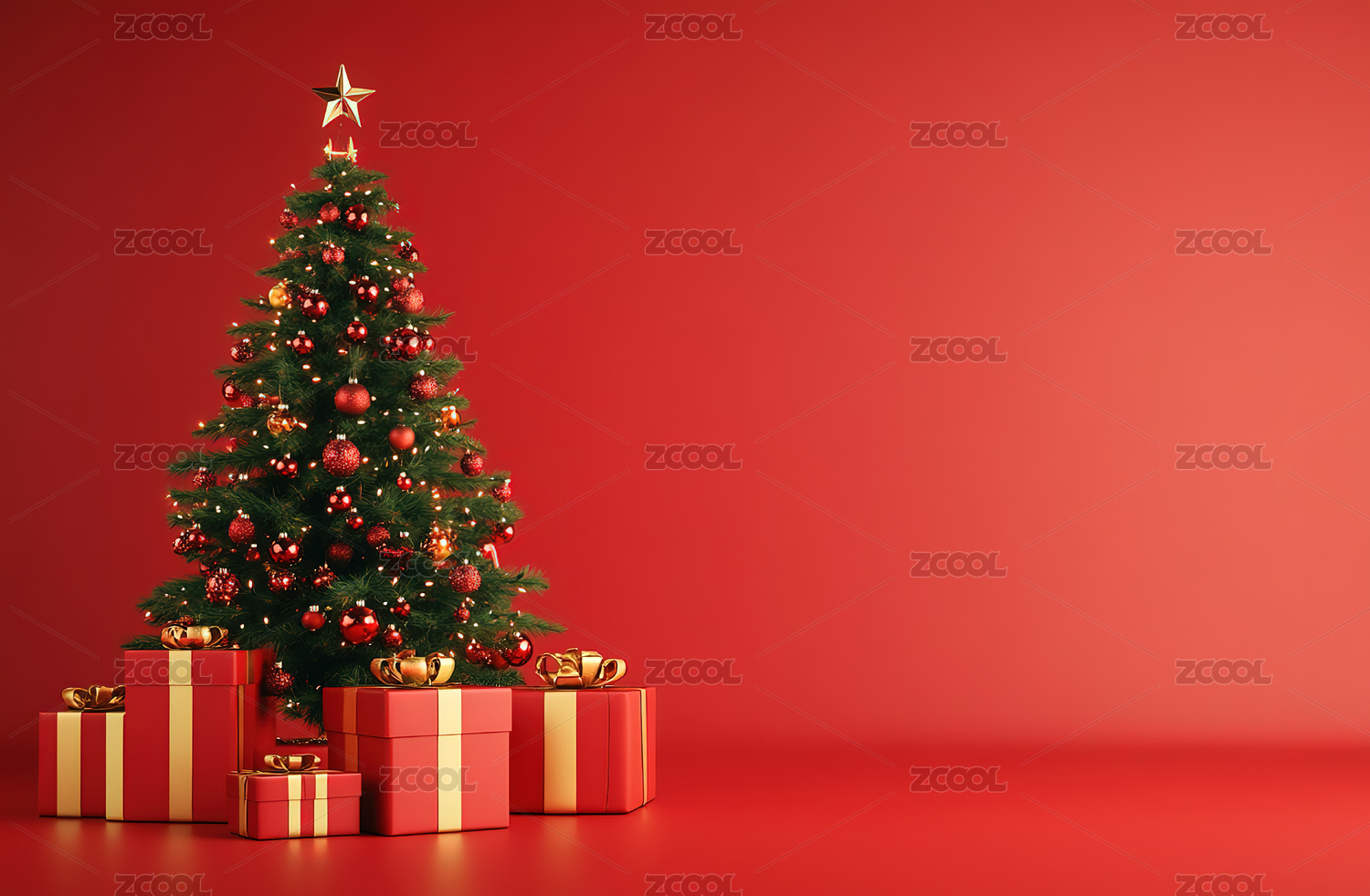 圣诞树,礼物,装饰,彩球,星星,包装盒,红色,绿色,灯光,影子