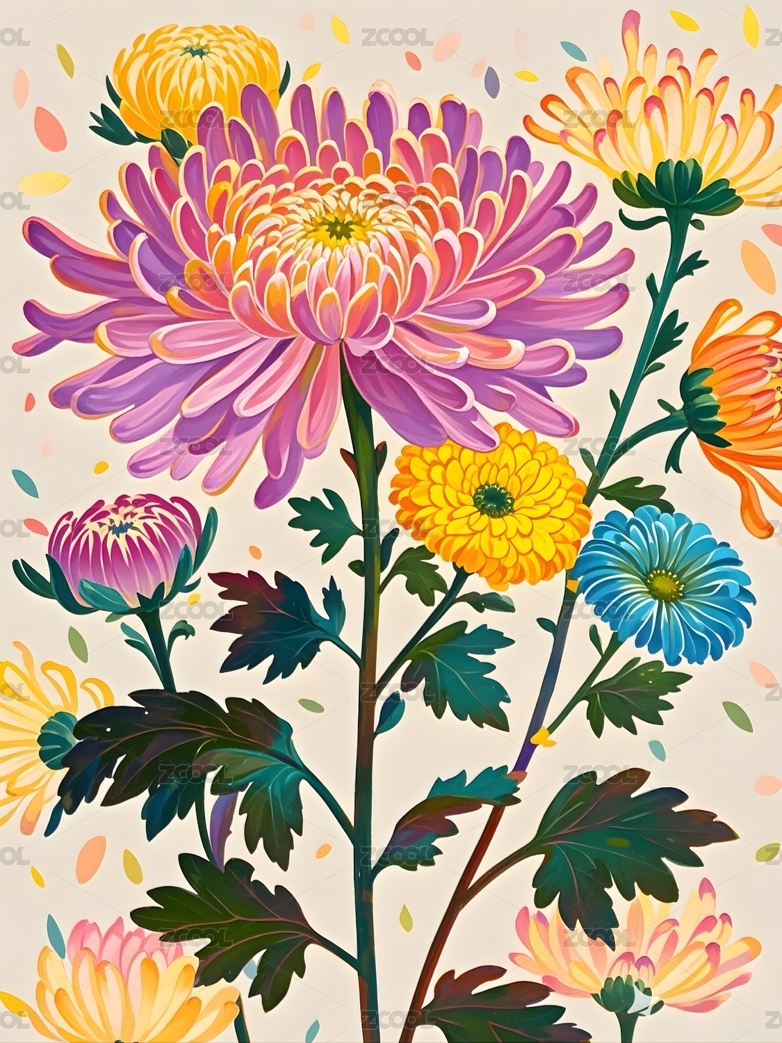 菊花,花朵,插画,艺术,花卉,传统,插画风格,中国风,花卉插画,复古