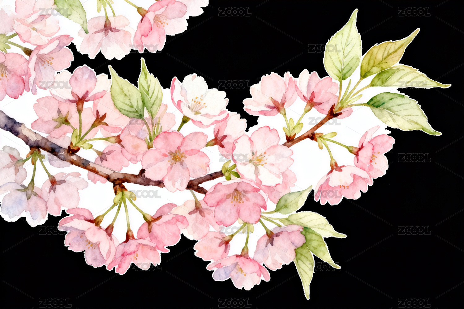 樱花,水彩,花朵,水彩画,花卉,春天,树枝,叶子,柔美,色彩