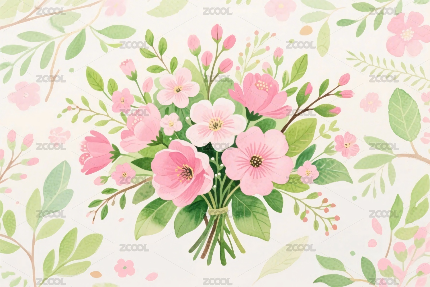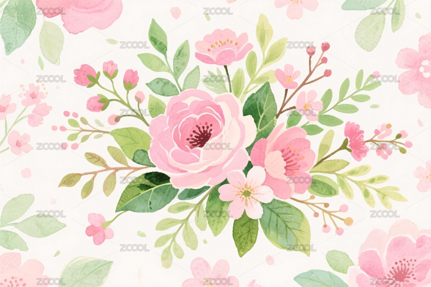 水彩可爱浅粉色别致花束剪贴画白色背景