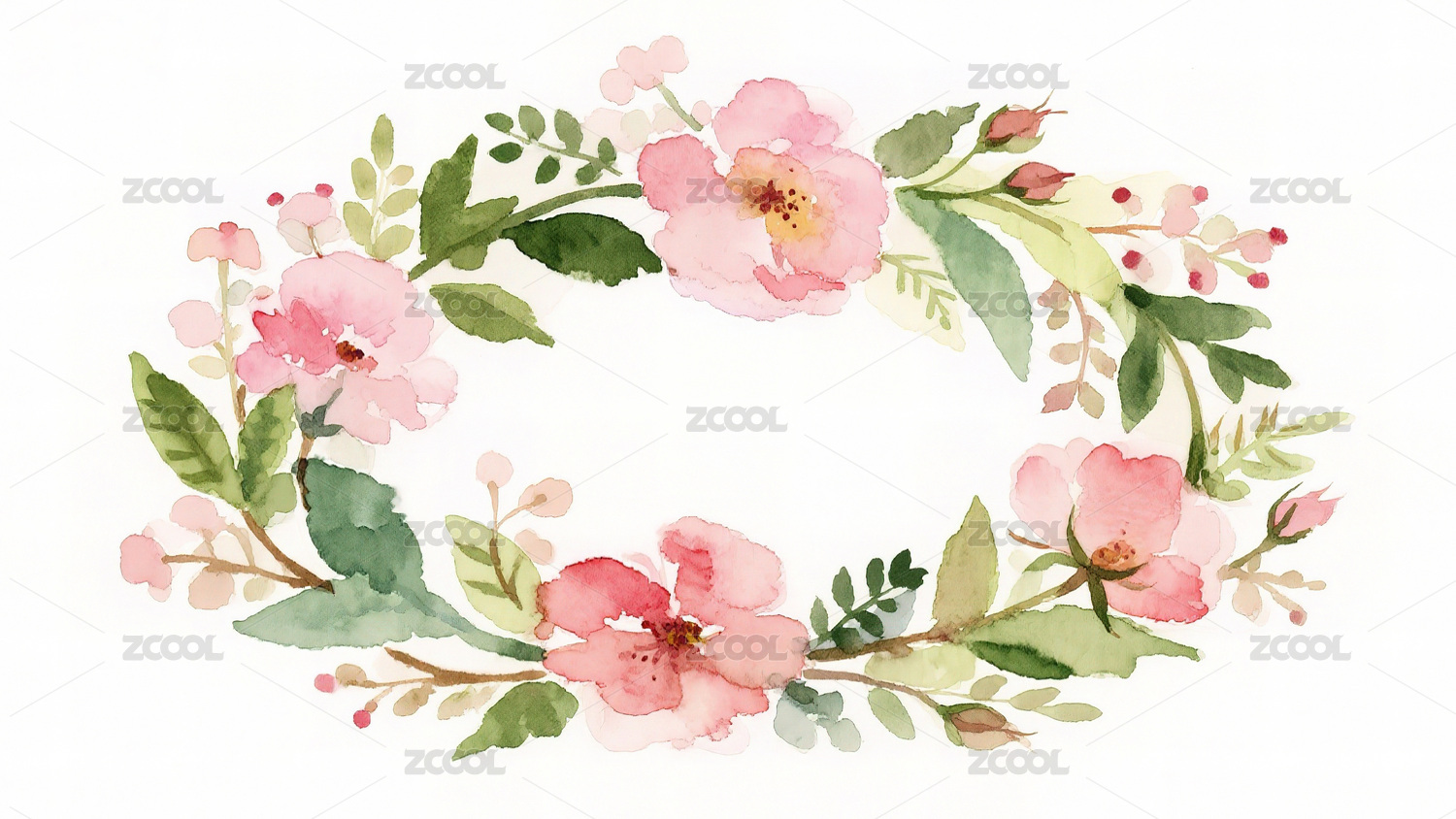 椭圆形粉色花环 唯美卡通春季装饰素材