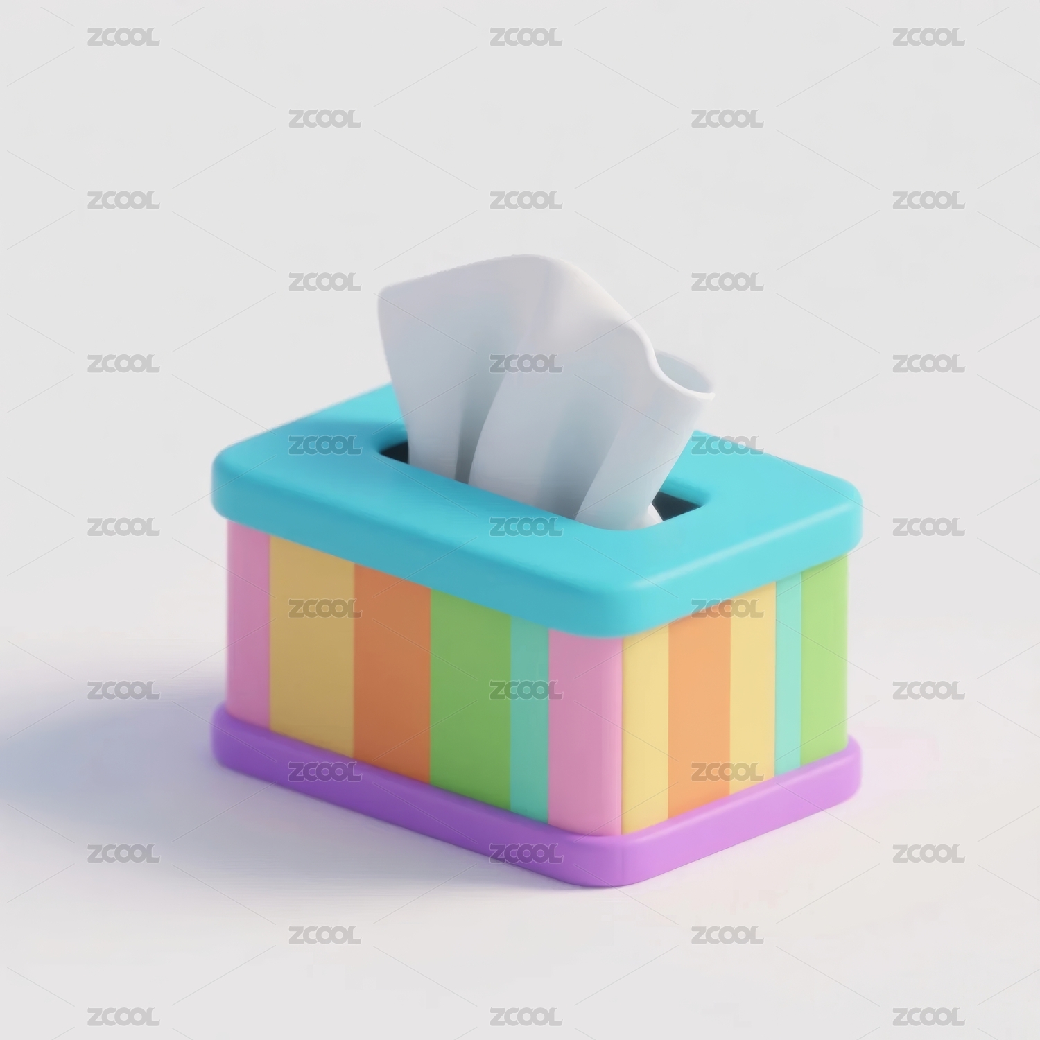 白色背景,3D卡通风格的蓝色纸巾盒抽纸图