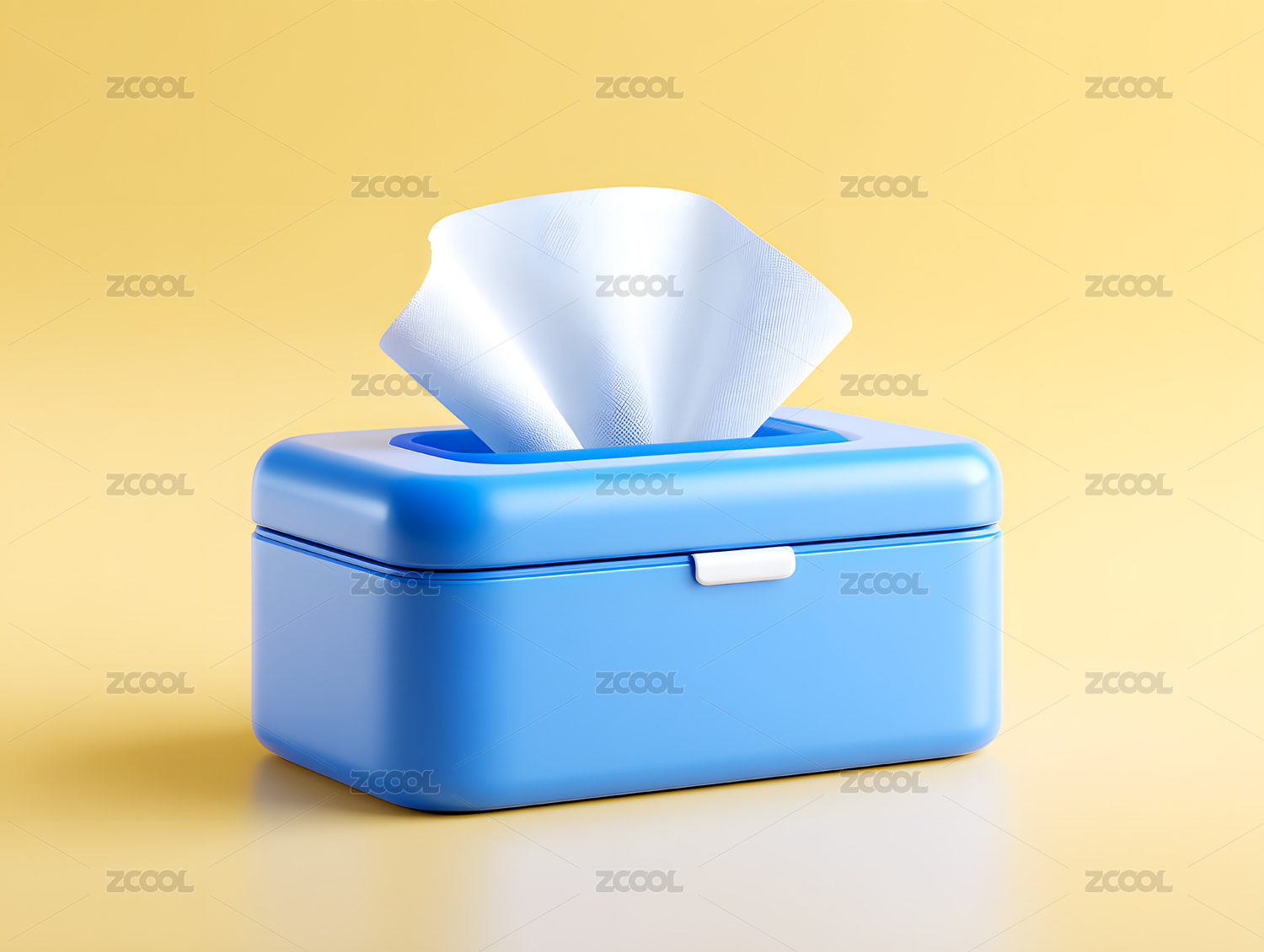 白色背景,3D卡通风格的蓝色纸巾盒抽纸图