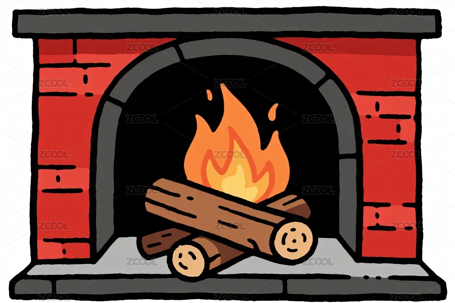 壁炉,火焰,木柴,积雪,砖墙,插画,矢量,冬季,温暖,装饰