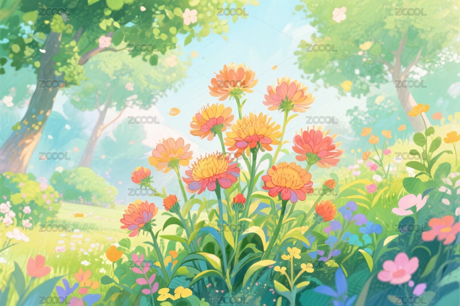 梦幻卡通春日花卉
