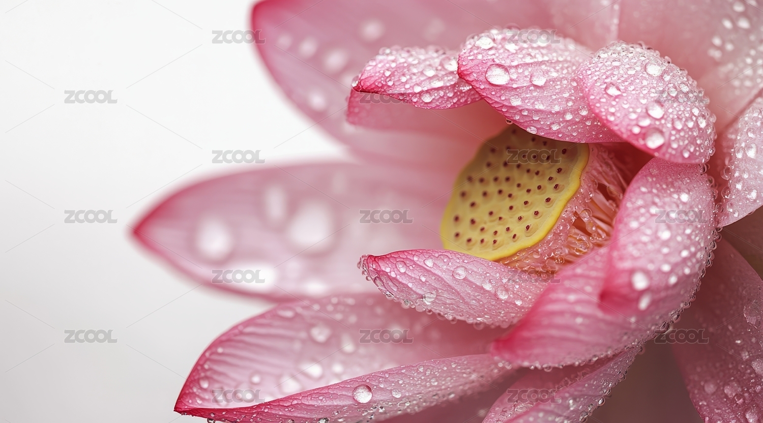 粉色莲花花瓣上的水珠特写