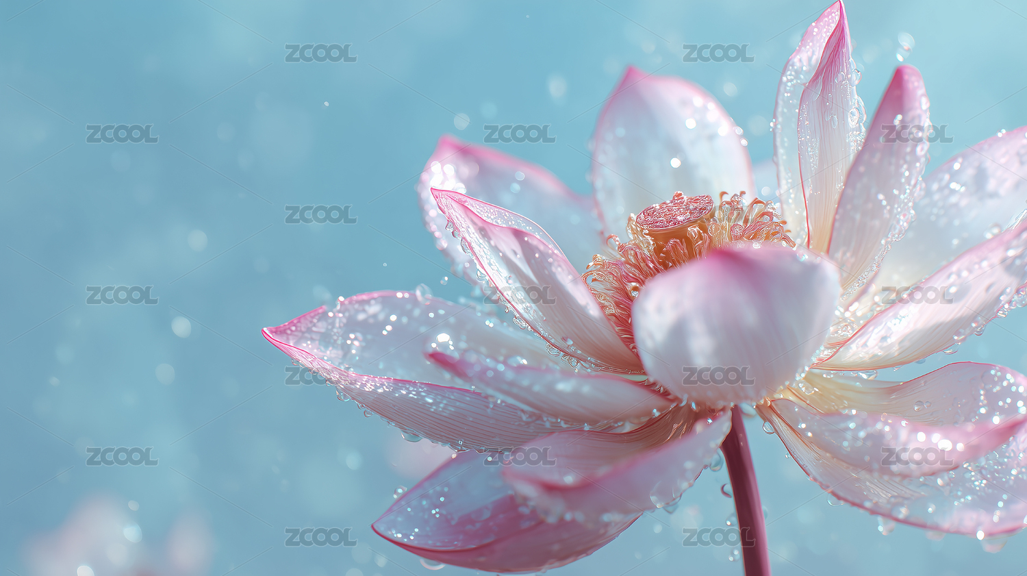 粉嫩莲花雨露晶莹剔透