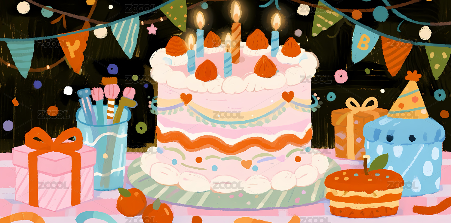插画风格的生日蛋糕画面