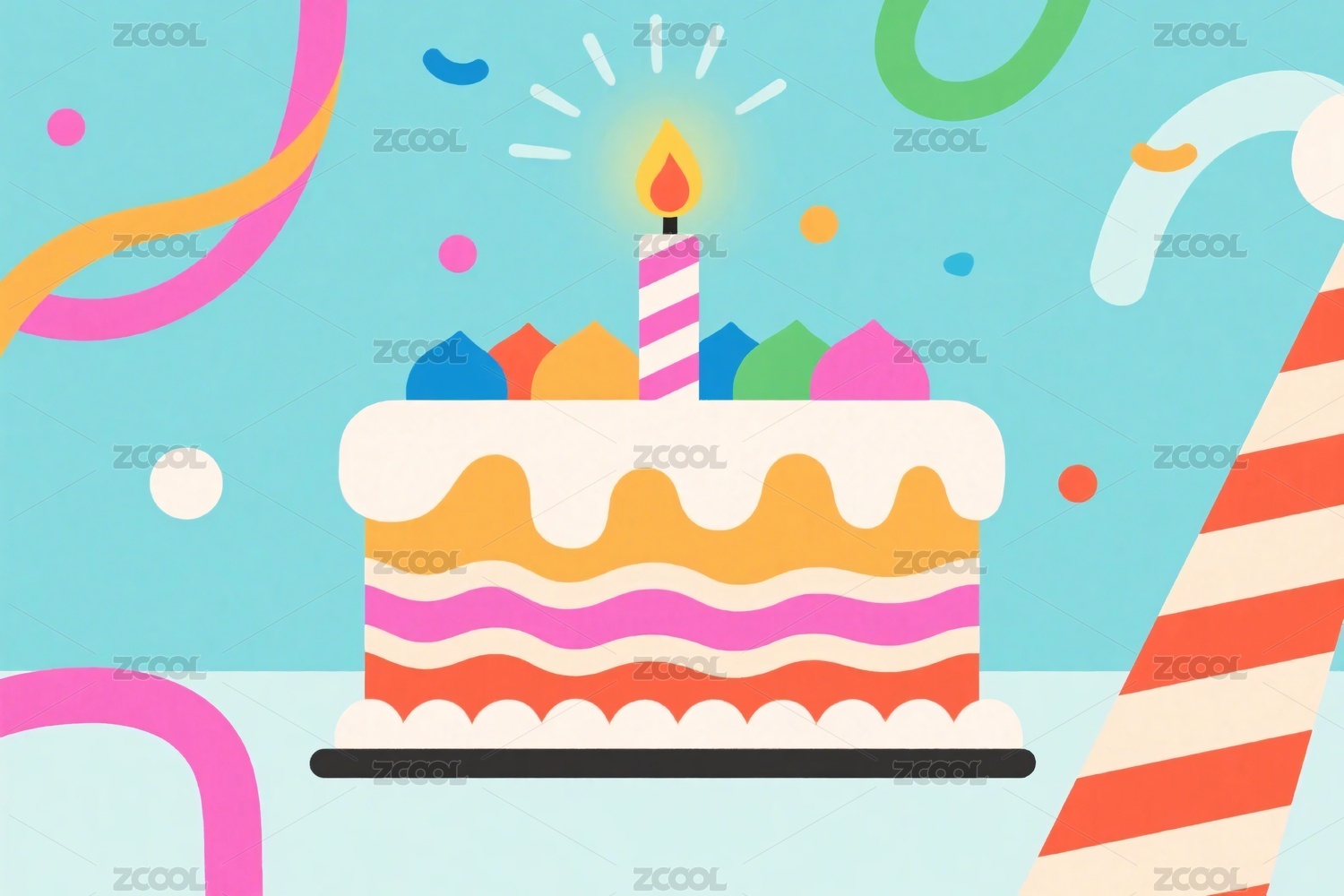 生日派对彩色蛋糕插画
