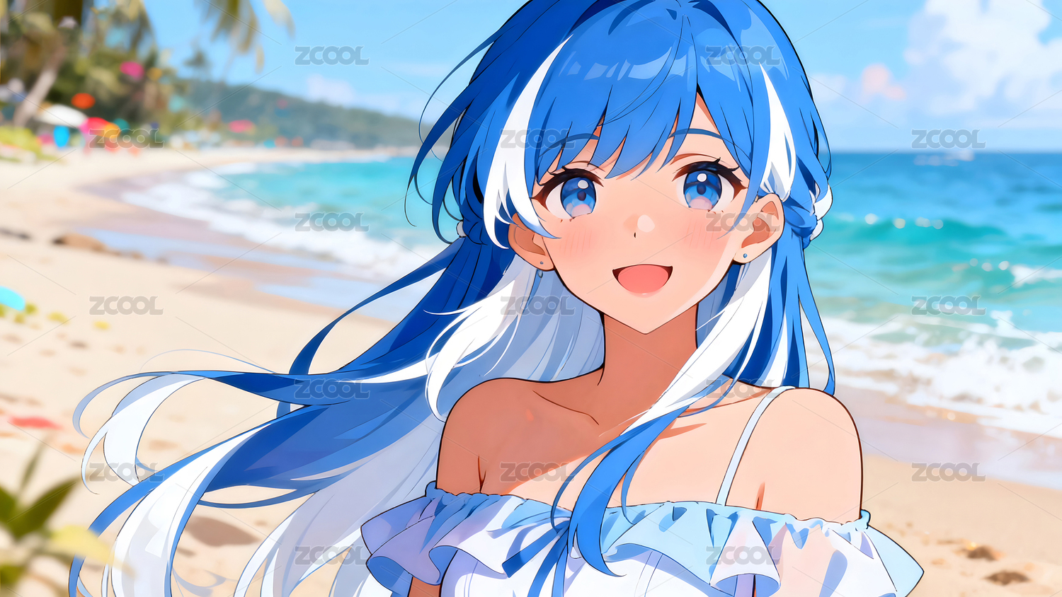 海滩动漫女孩微笑的特写