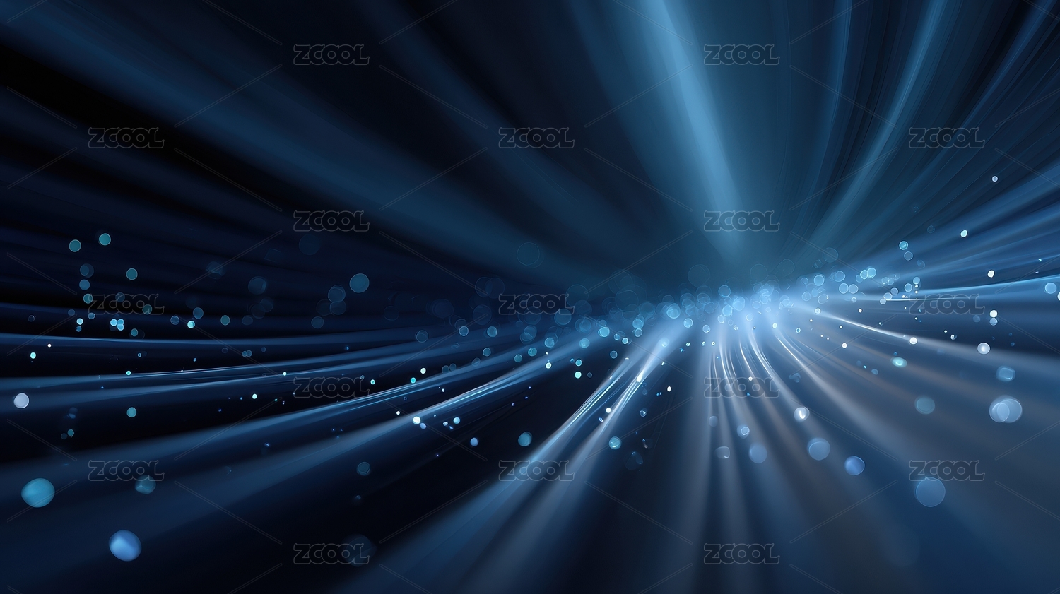 蓝色光束与粒子的梦幻背景