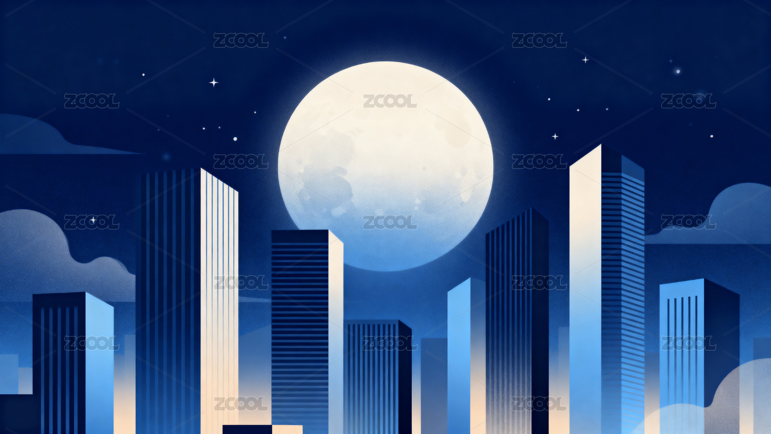满月高悬城市夜空建筑剪影